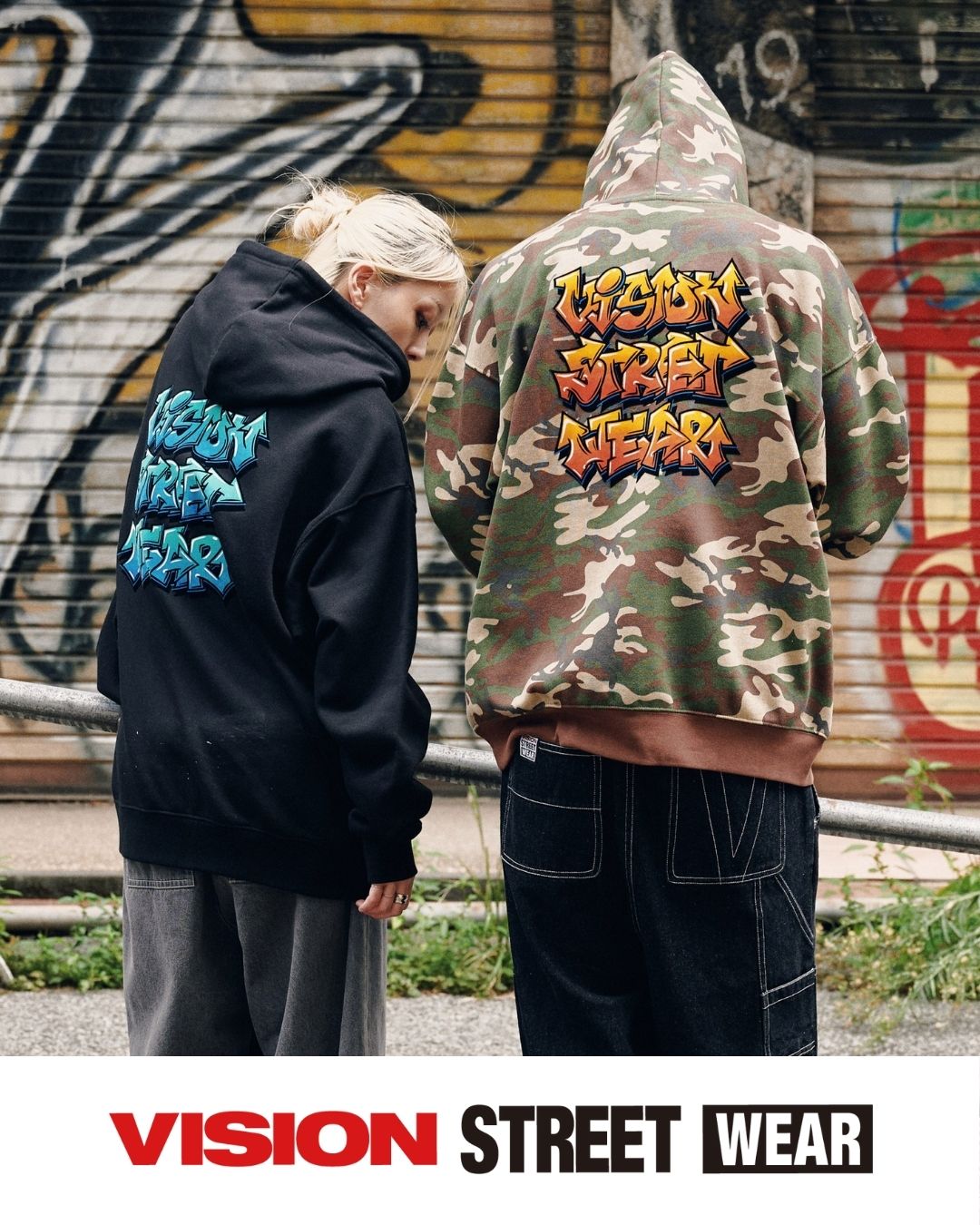 VISION STREET WEARGraffiti Hoodie / ゴースト総柄ジップパーカー