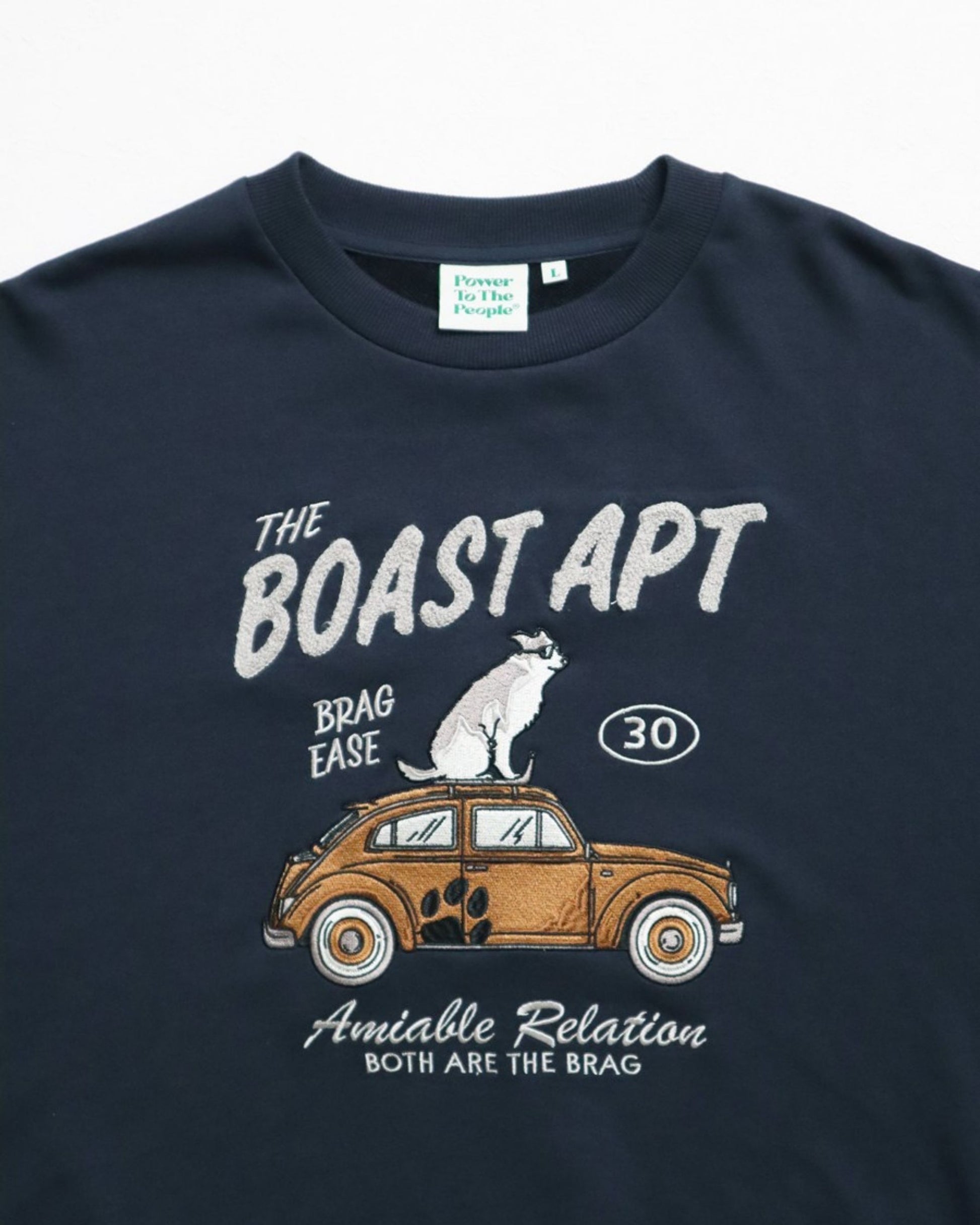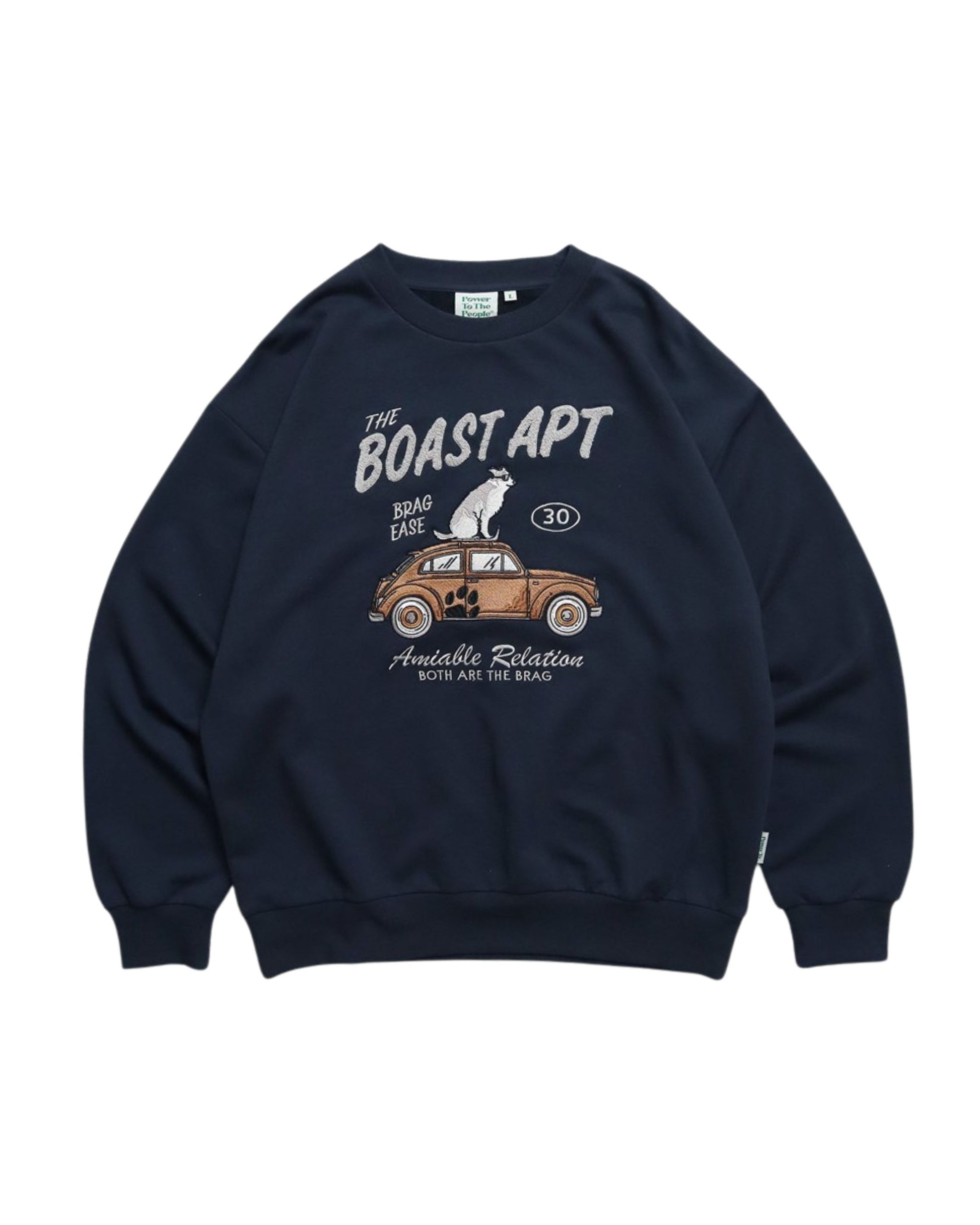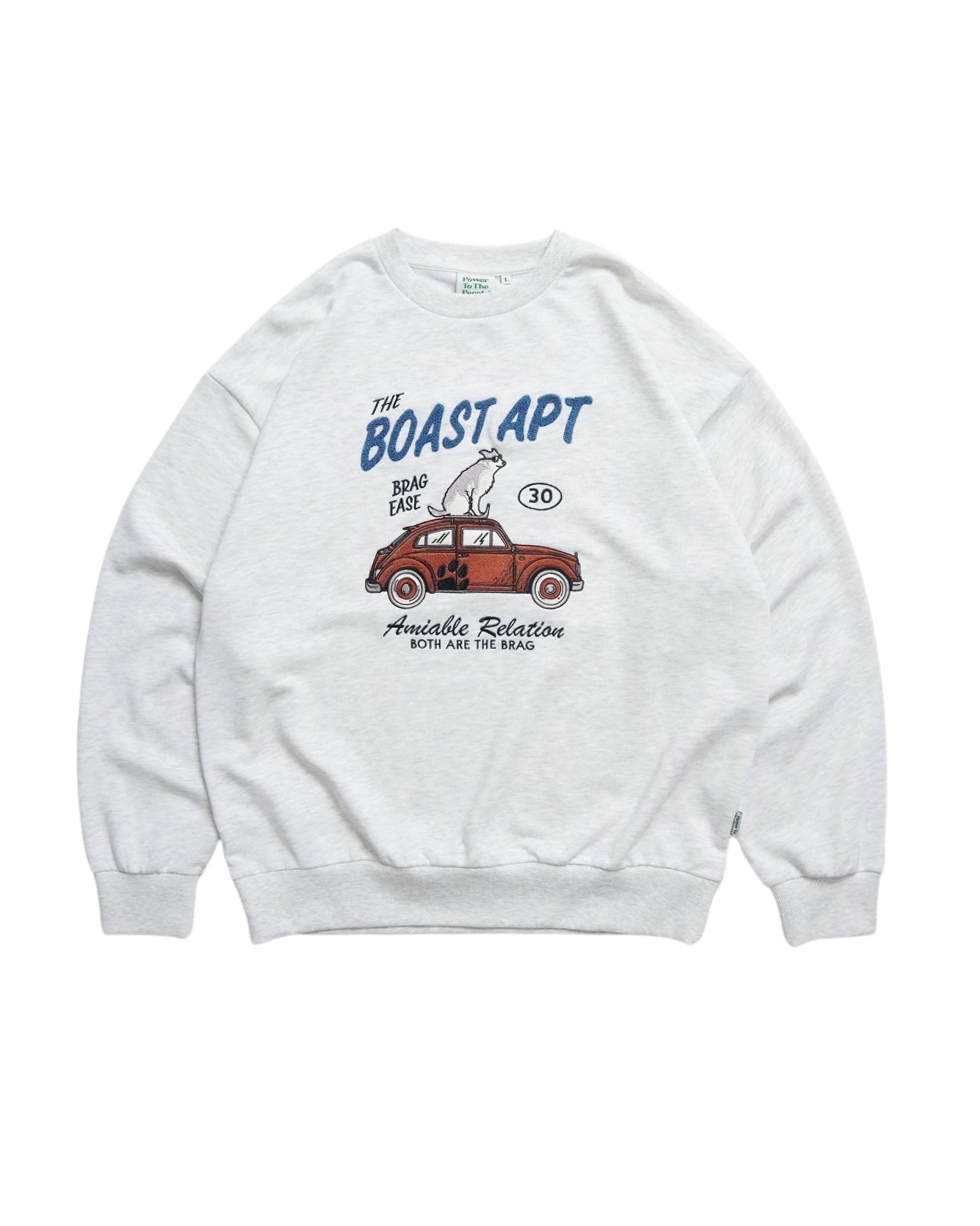 遊び心あふれるデザインの刺繡スウェット