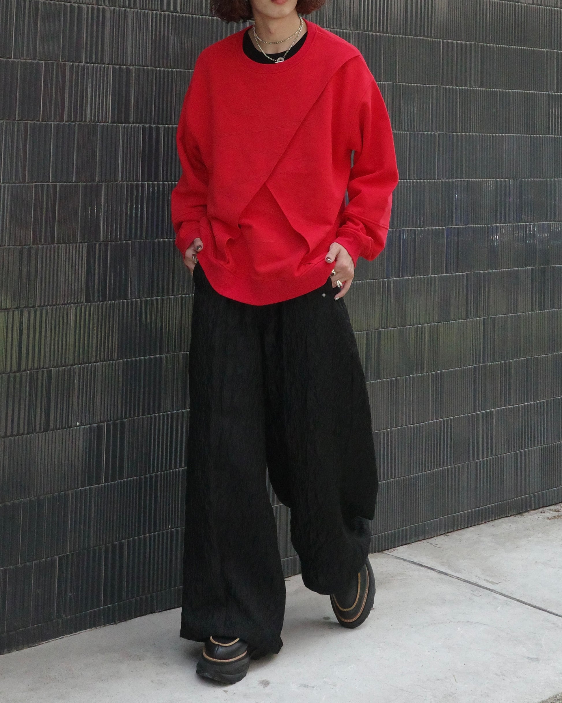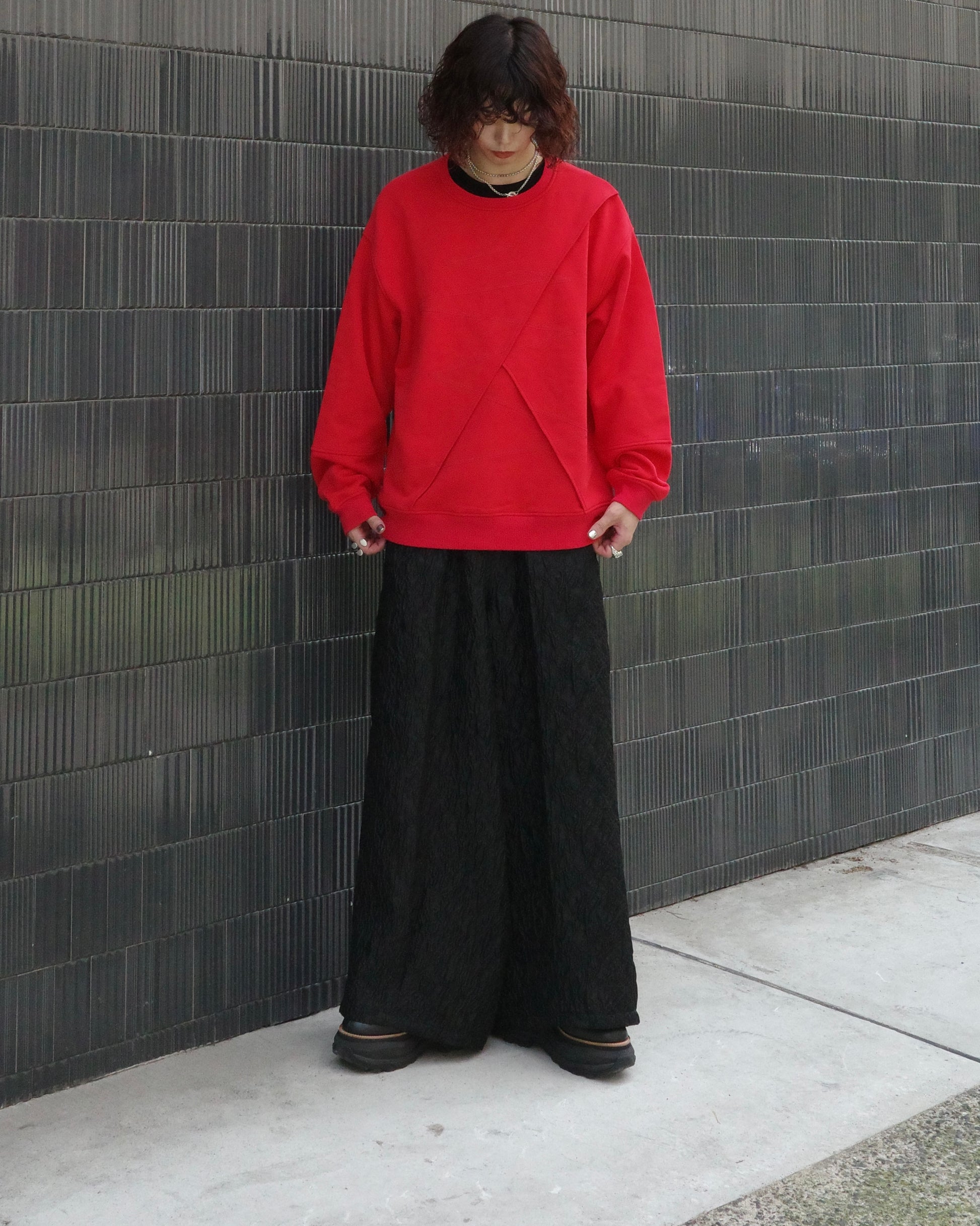スペインの画家・ディエゴ・ベラスケスの謎かけのような構成で有名な作品 「Las Meninas」(ラス・メニーナス)からインスパイアされた、 遠近感のあるステッチがポイントのクルーネックスエット。