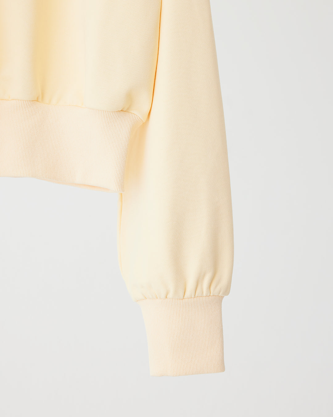 裾、袖口にギャザーを入れ、丸みのあるシルエットに仕上げています。