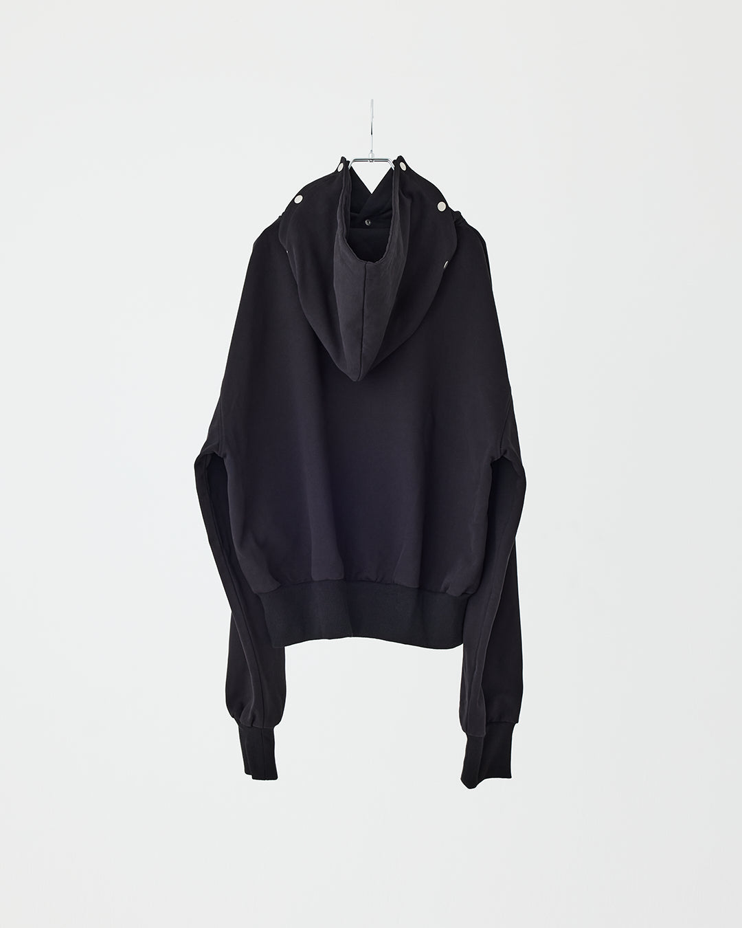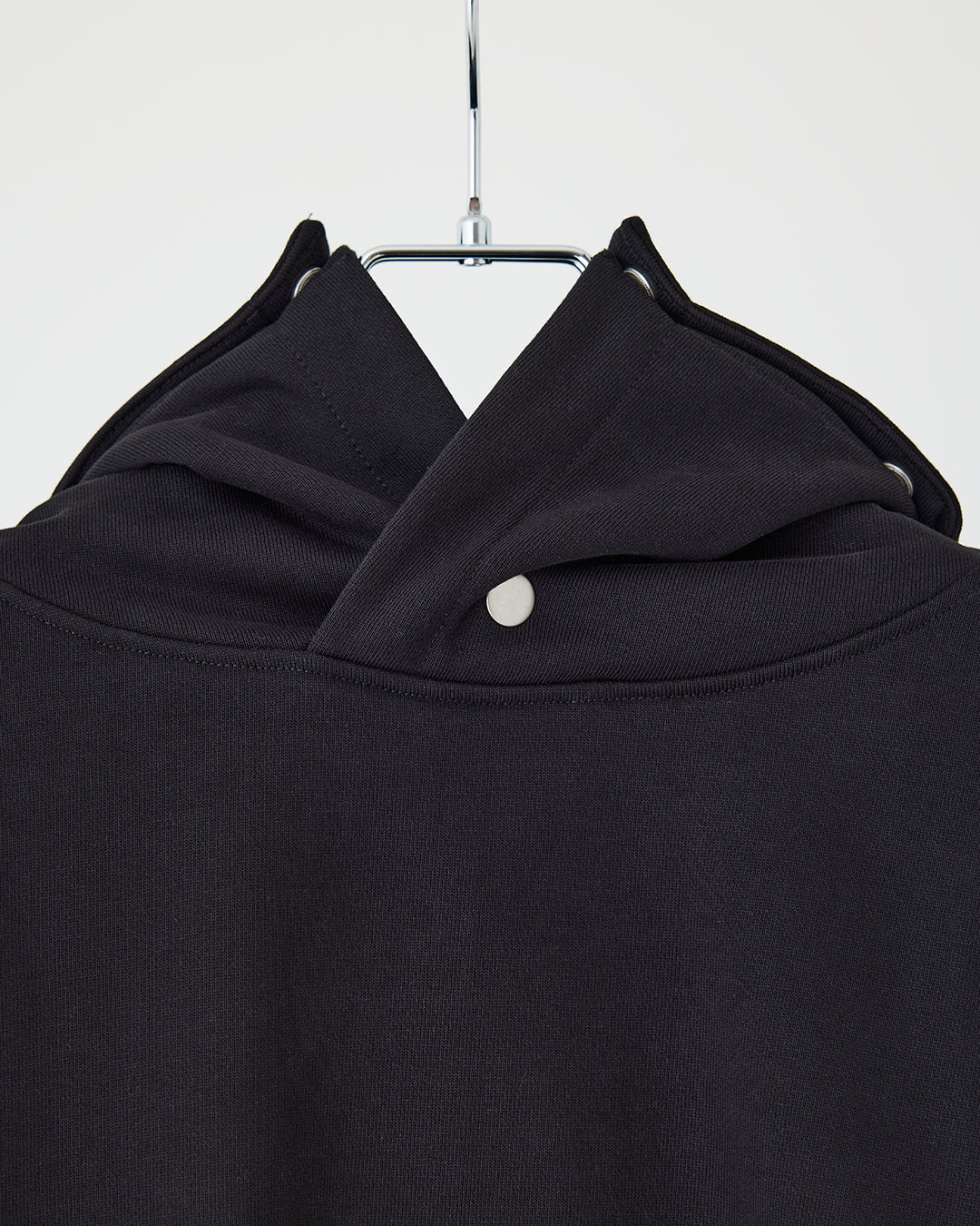 ドットボタンでフードの上部が取り外し可能な2WAYデザインのフーディー。