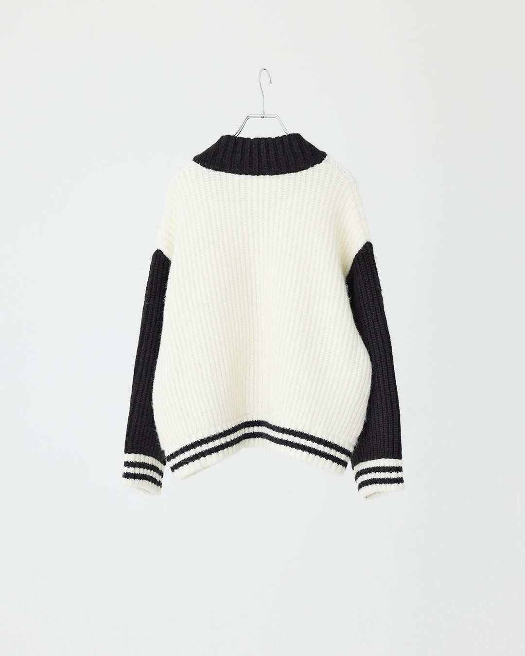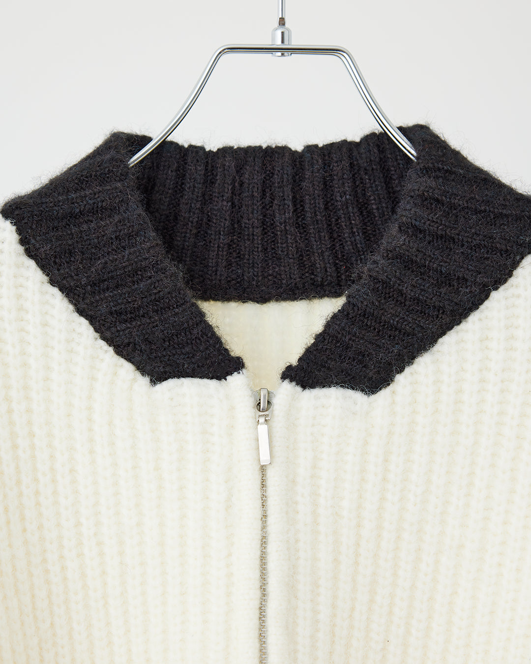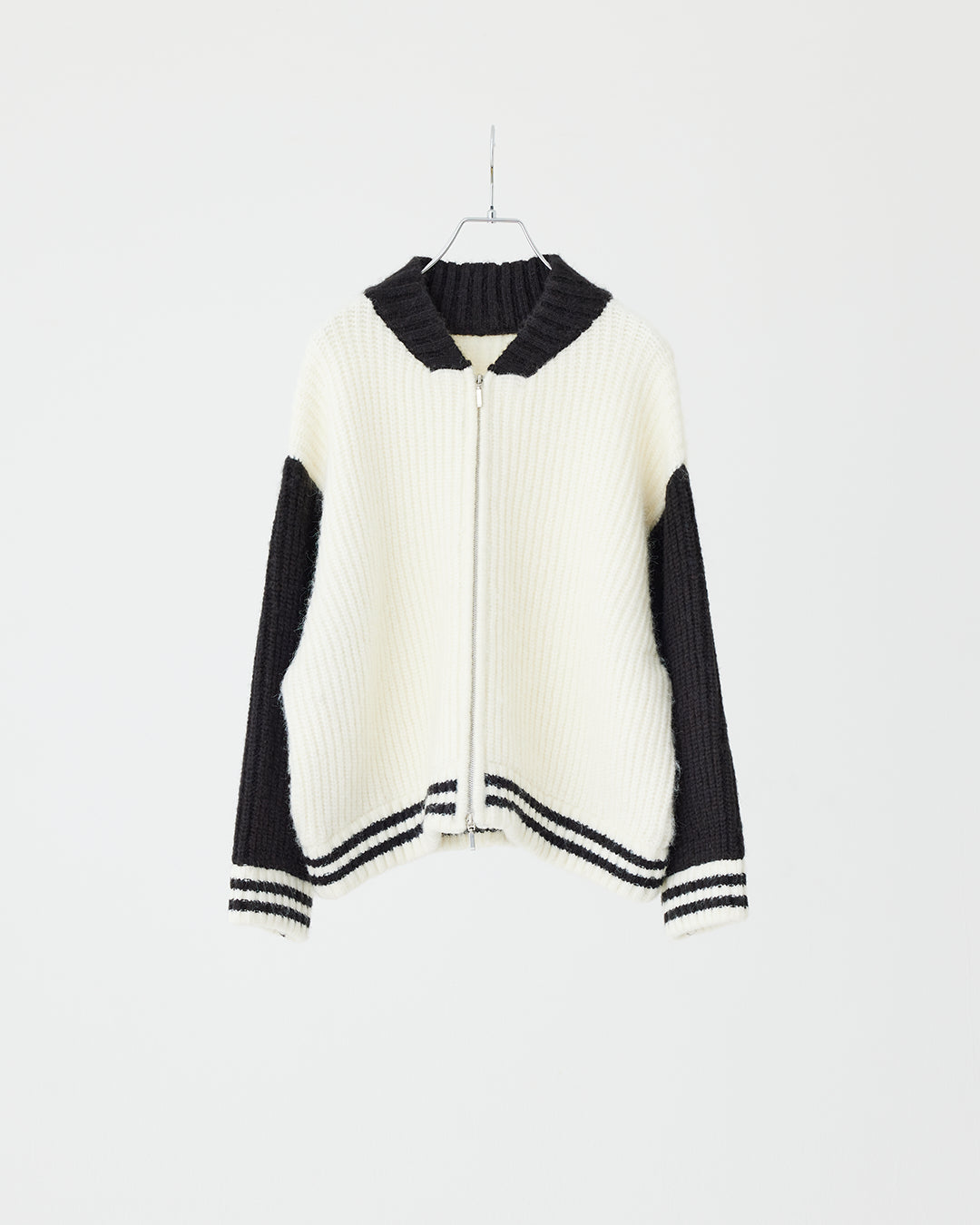 カジュアルになりがちなスタジャンをニットで作ることで柔らかさと上品さを出したアイテム。