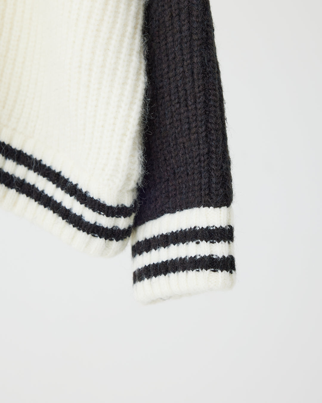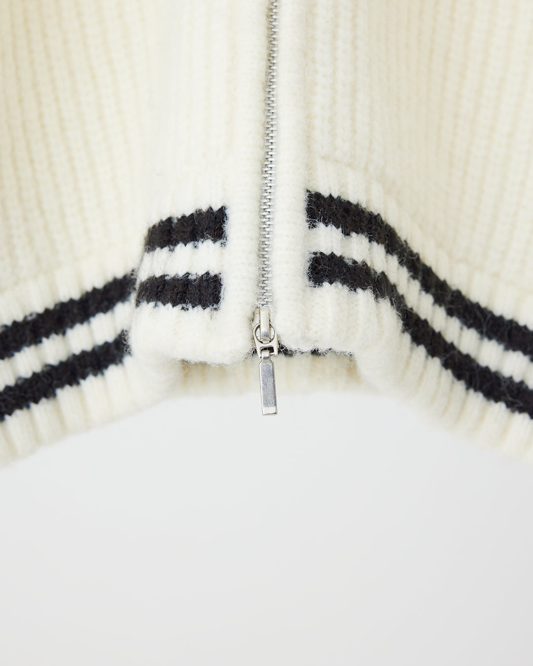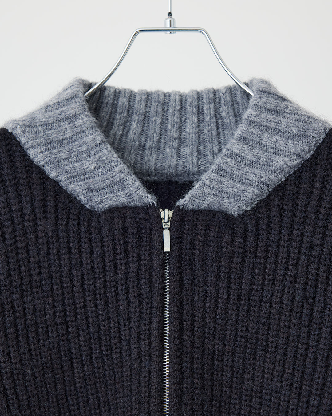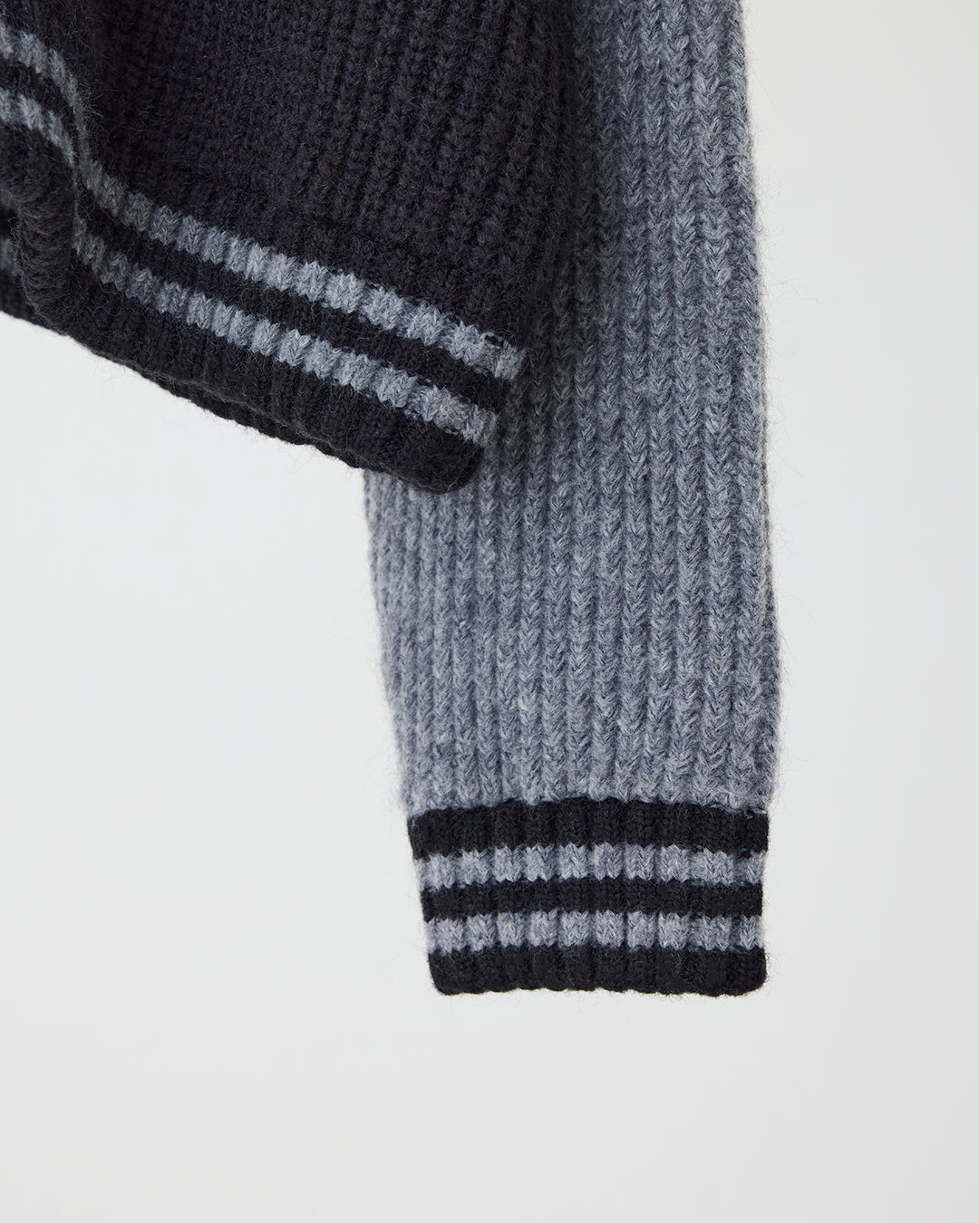 カジュアルになりがちなスタジャンをニットで作ることで柔らかさと上品さを出したアイテム。