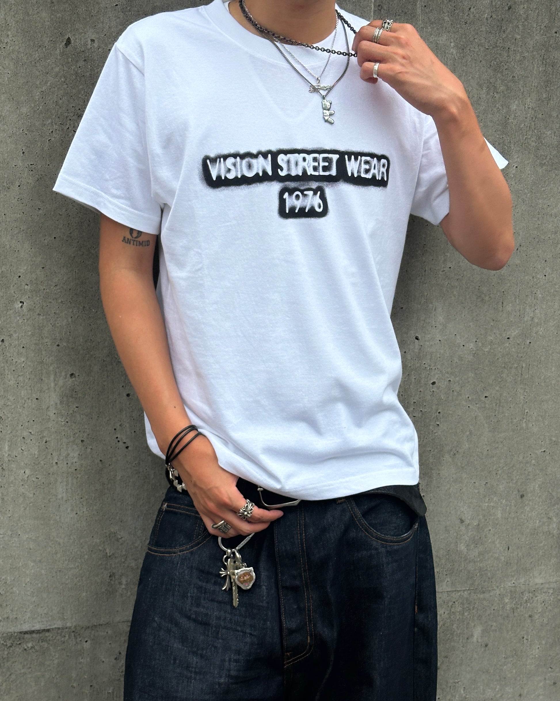 1976年創業を象徴する「VISION STREET WEAR 1976」のロゴを、スプレーアート風のグラフィックで大胆に配置。