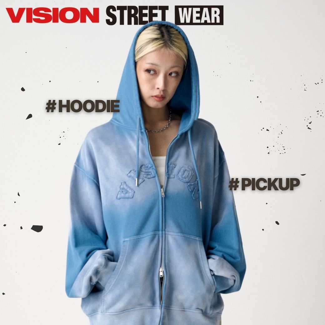 VISION STREET WEARBleach College ZIP / ブリーチ加工Wジップカレッジパーカー
