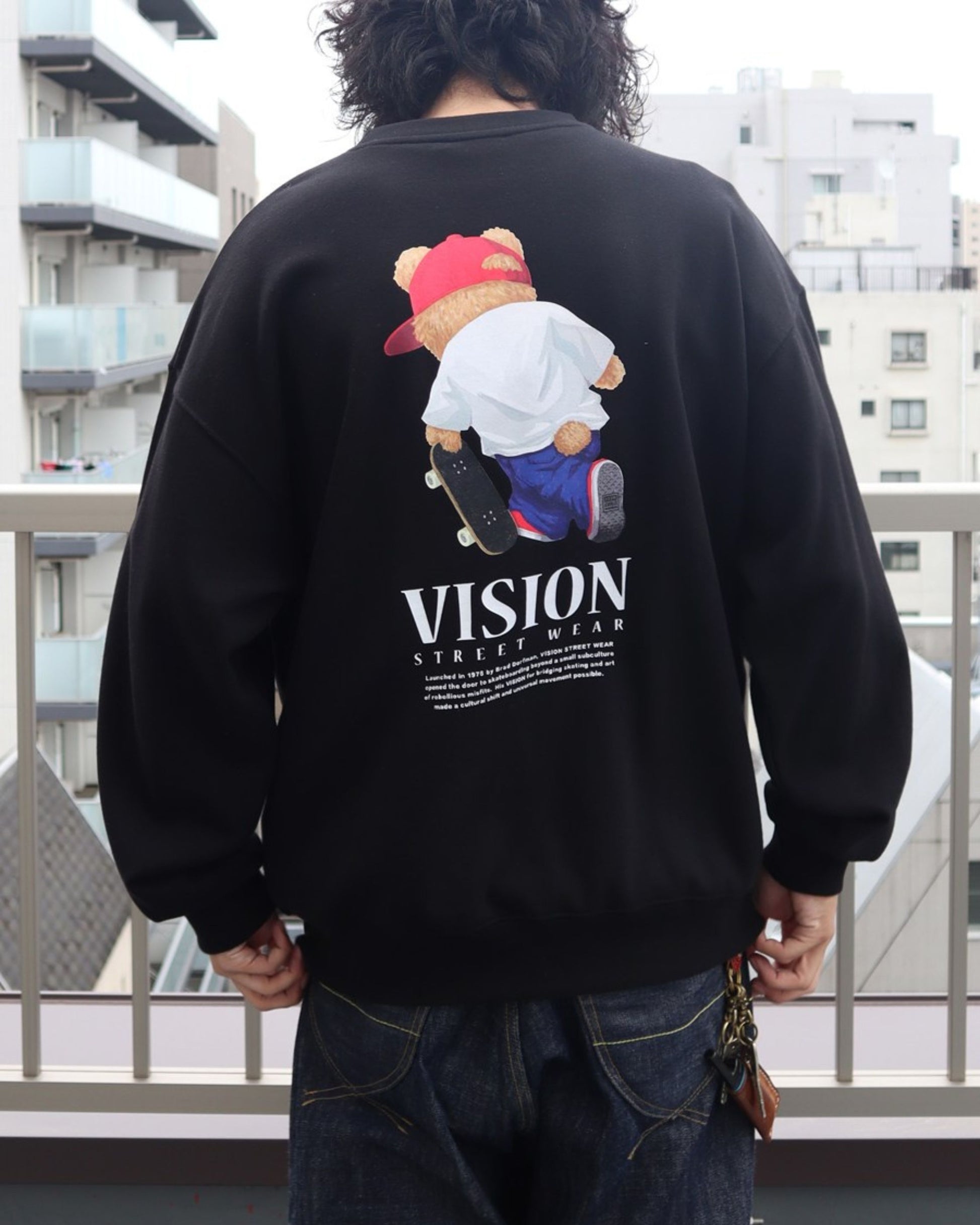 前後にクマを大胆に配置した、インパクト抜群のトレーナー