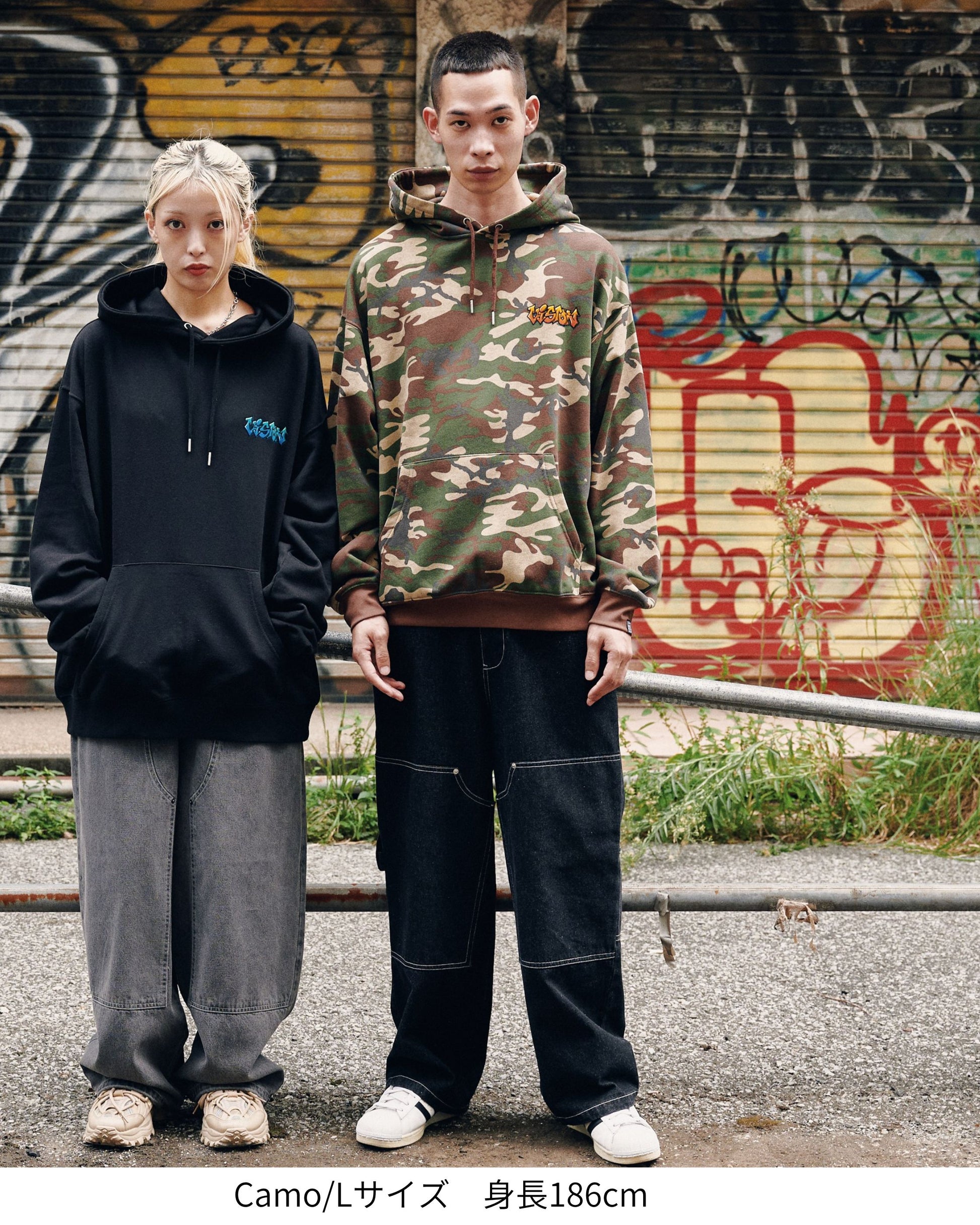 スプレーアート風のデザインがストリート感抜群!ロゴパーカー