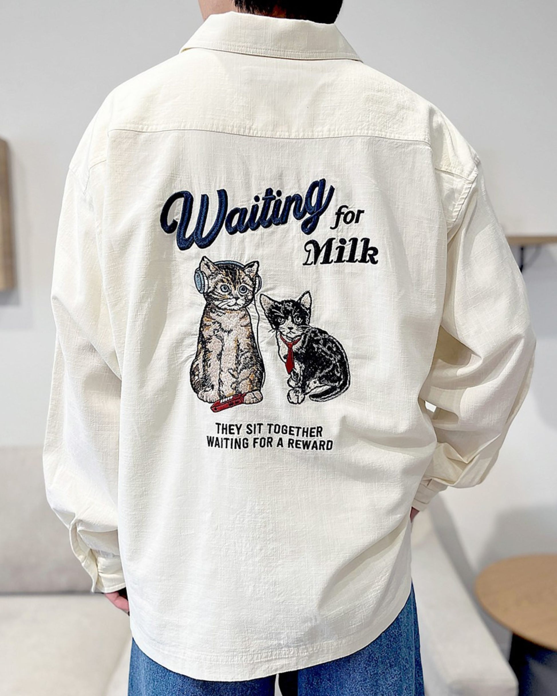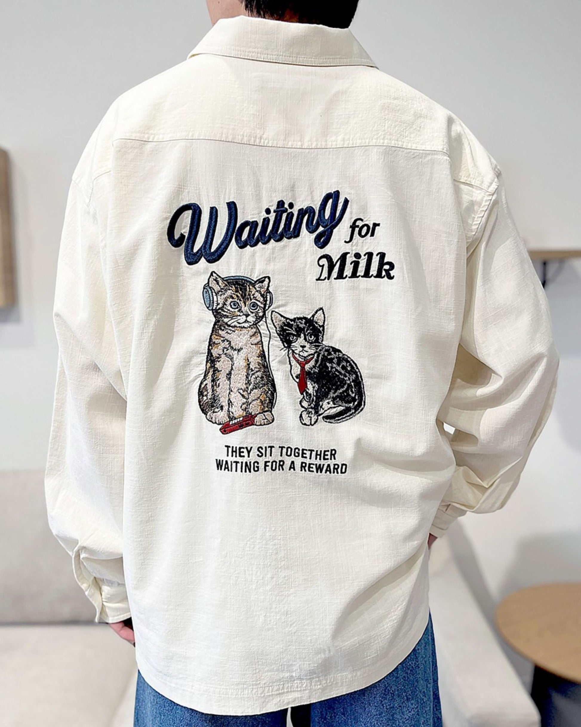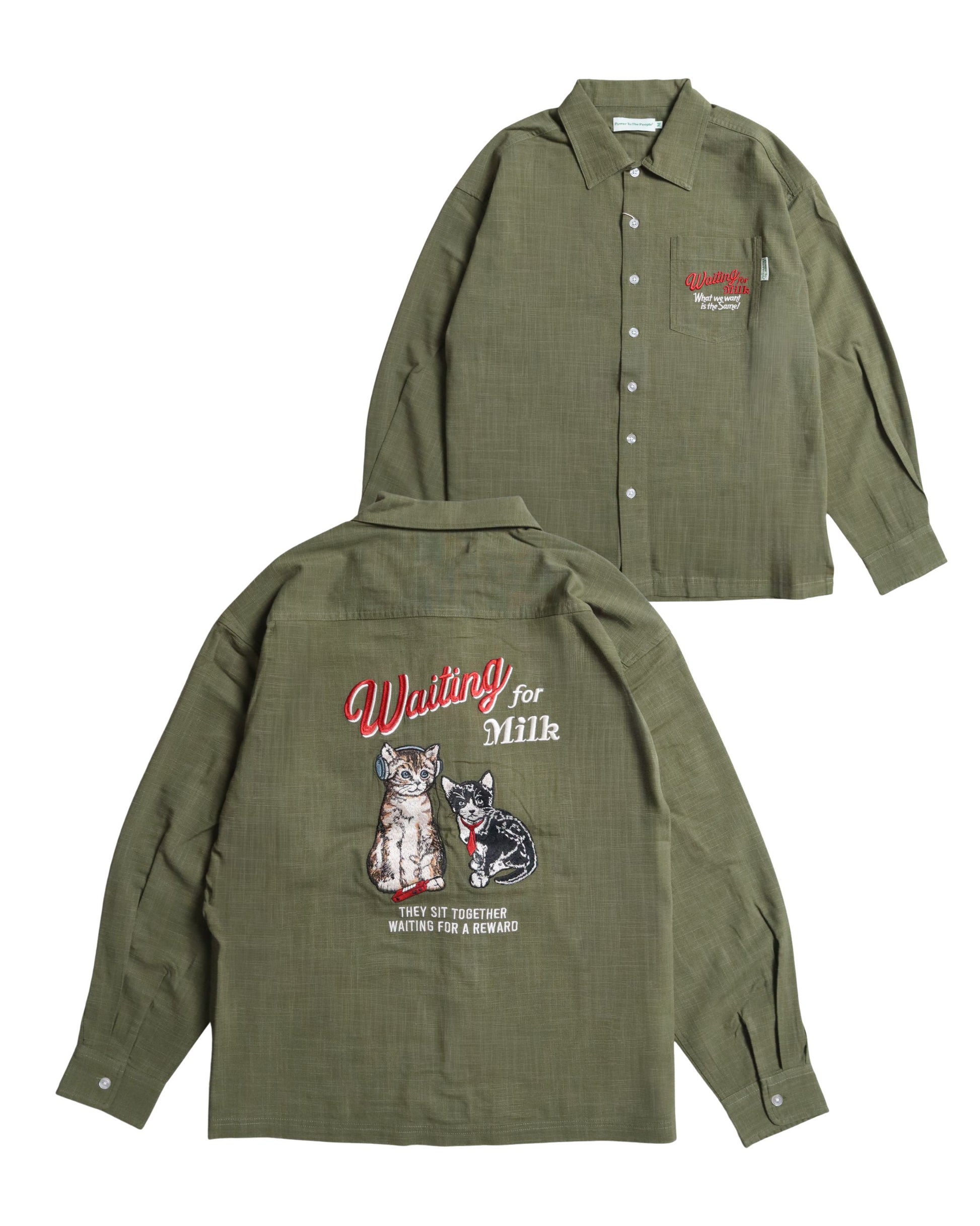 【新色追加】リネンライクシャツ ネコ柄