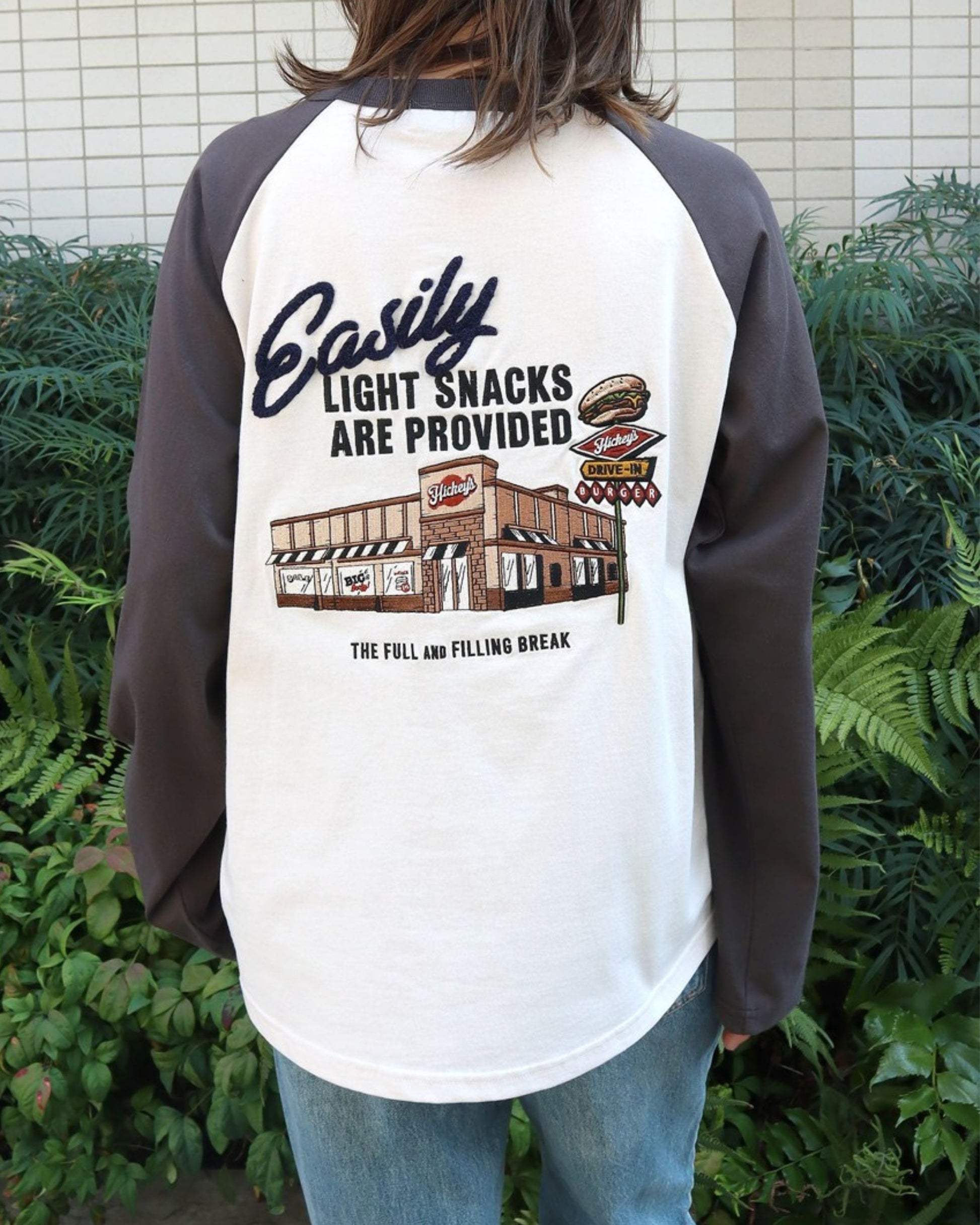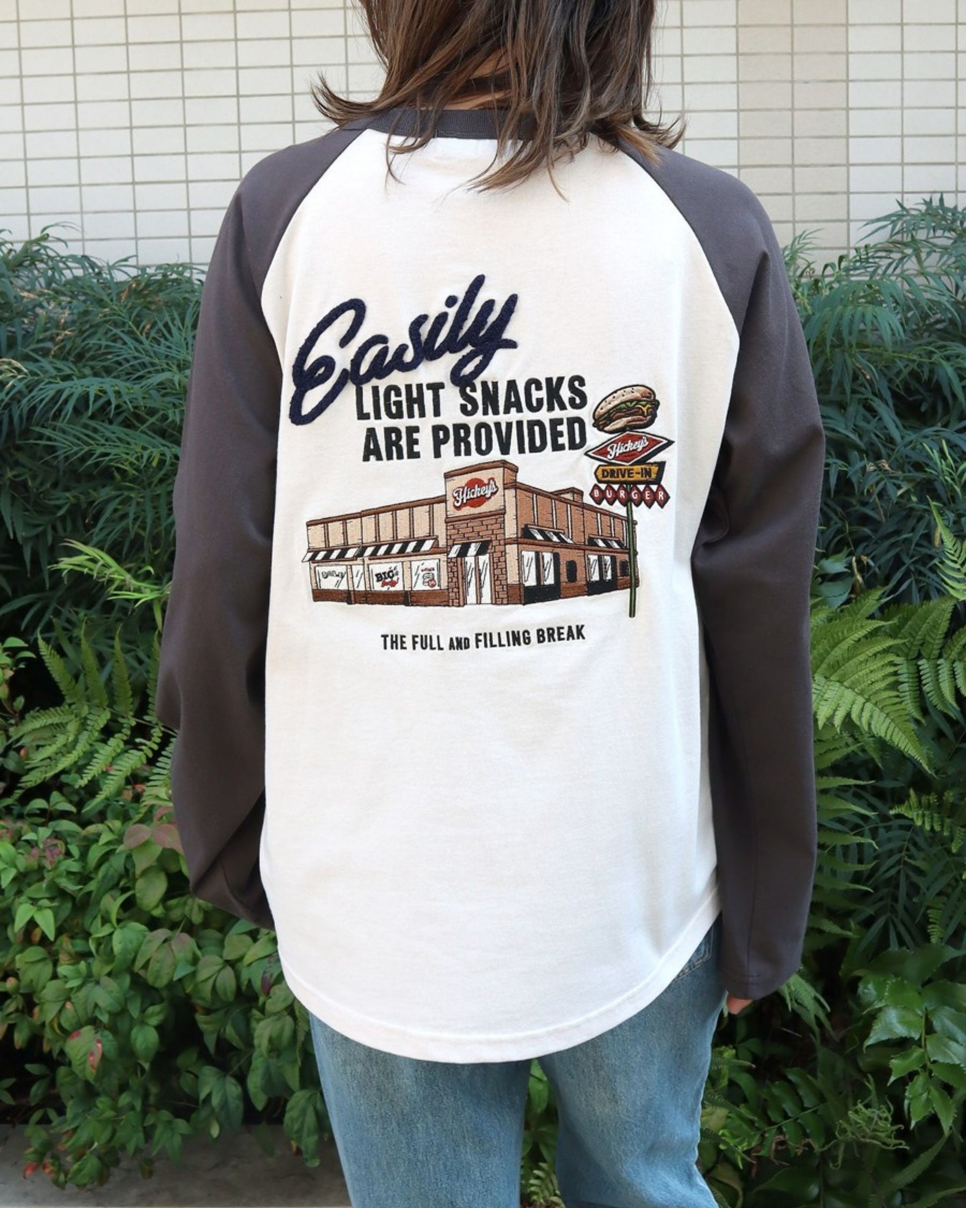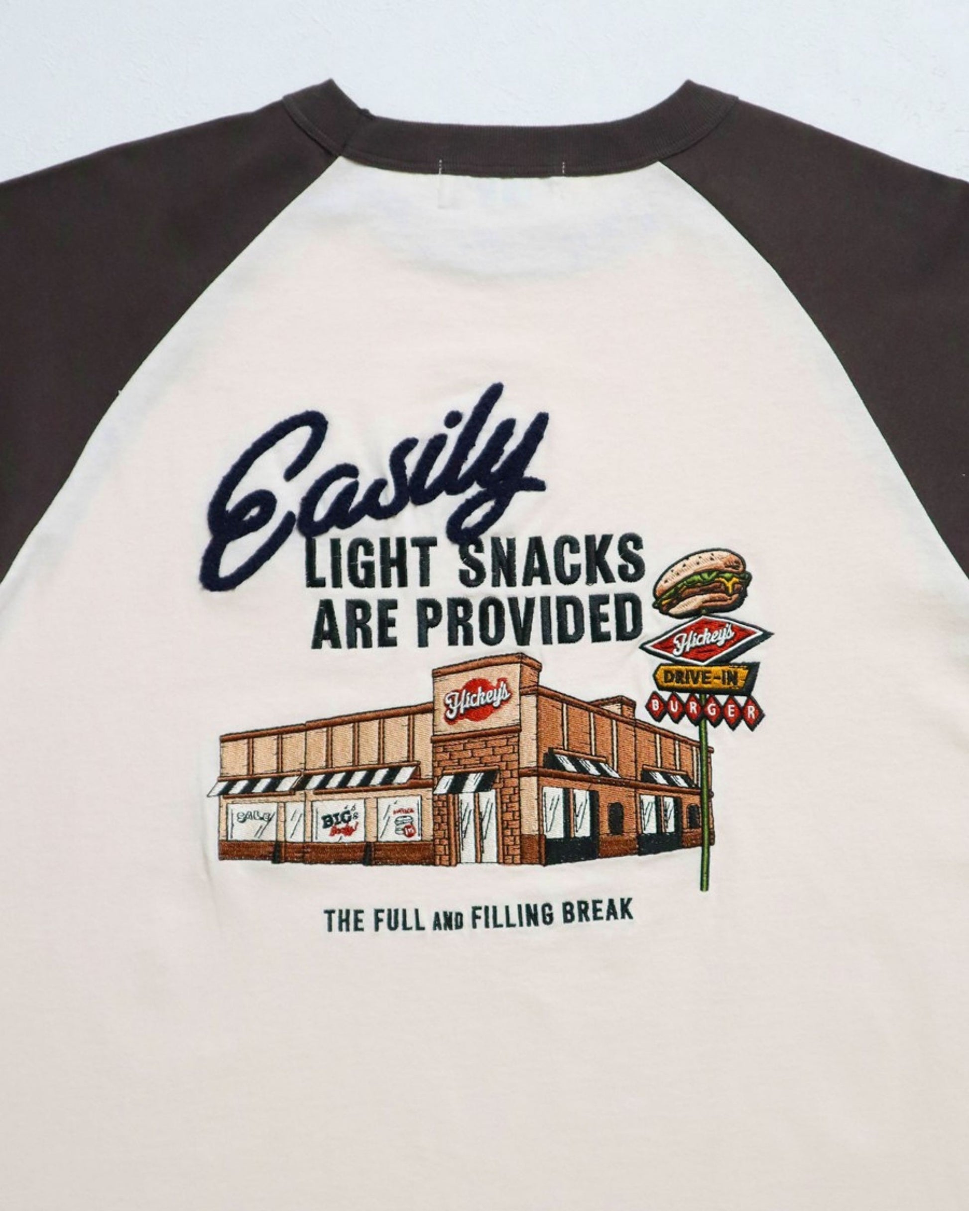 ハンバーガーショップ刺繍ラグランロンT