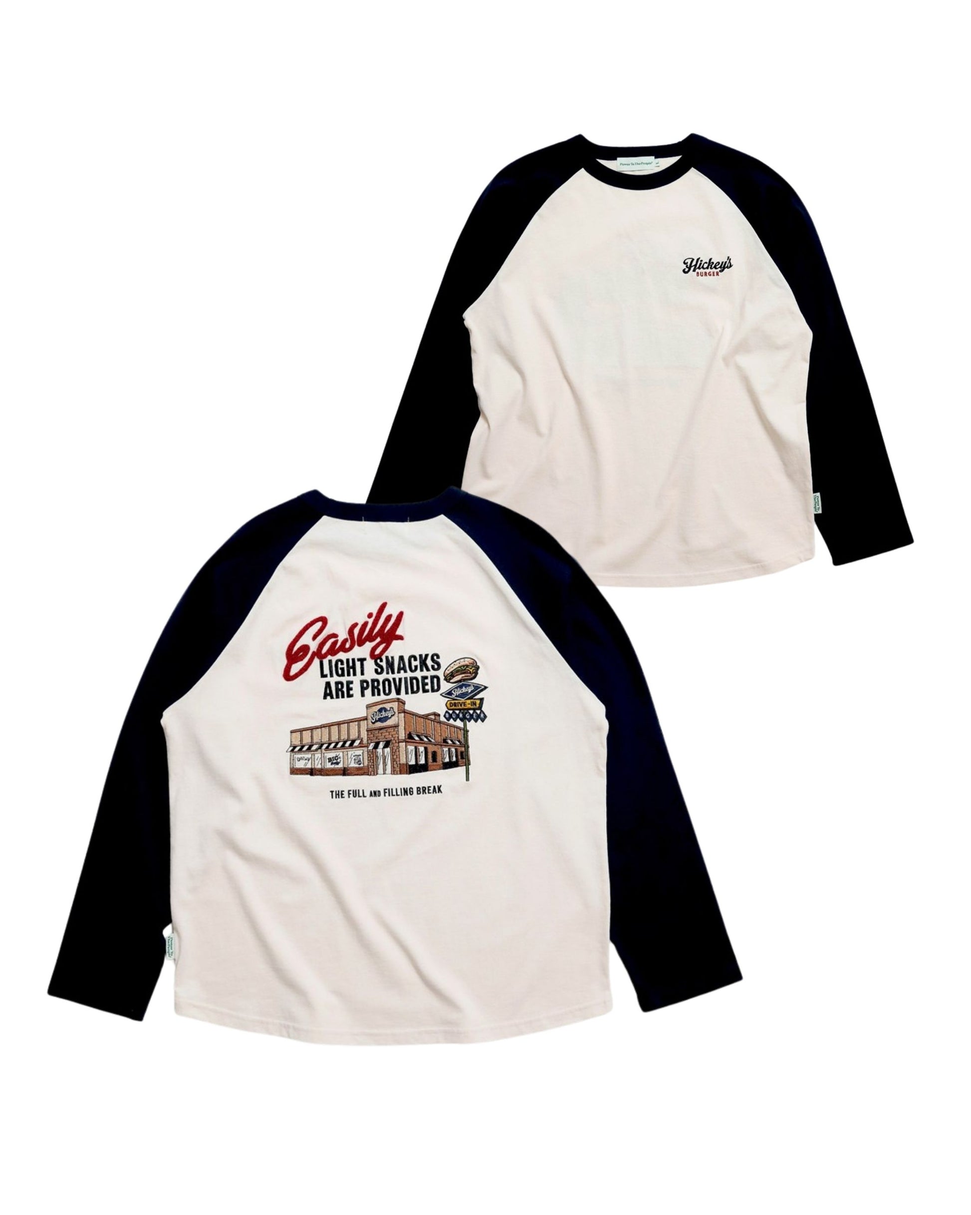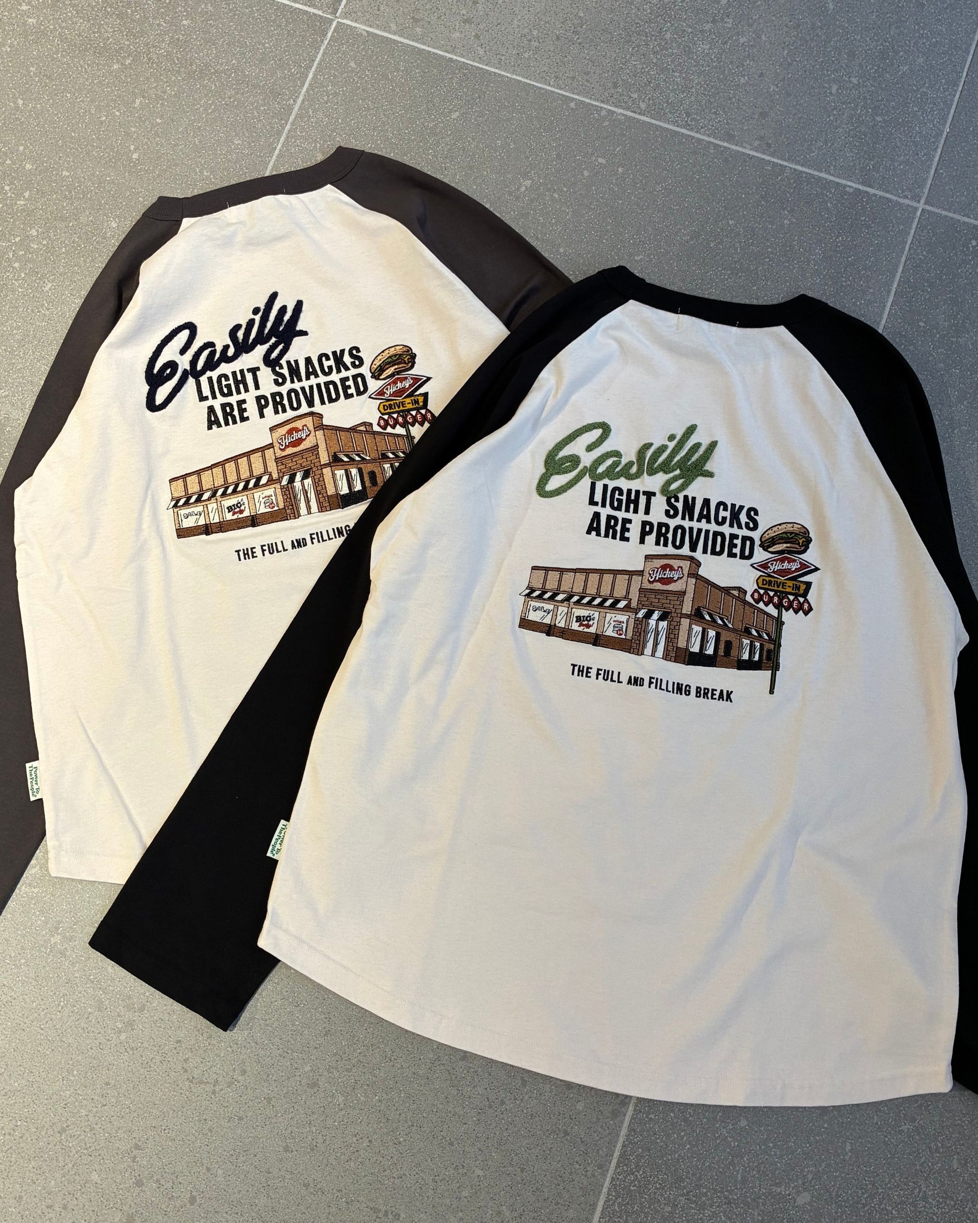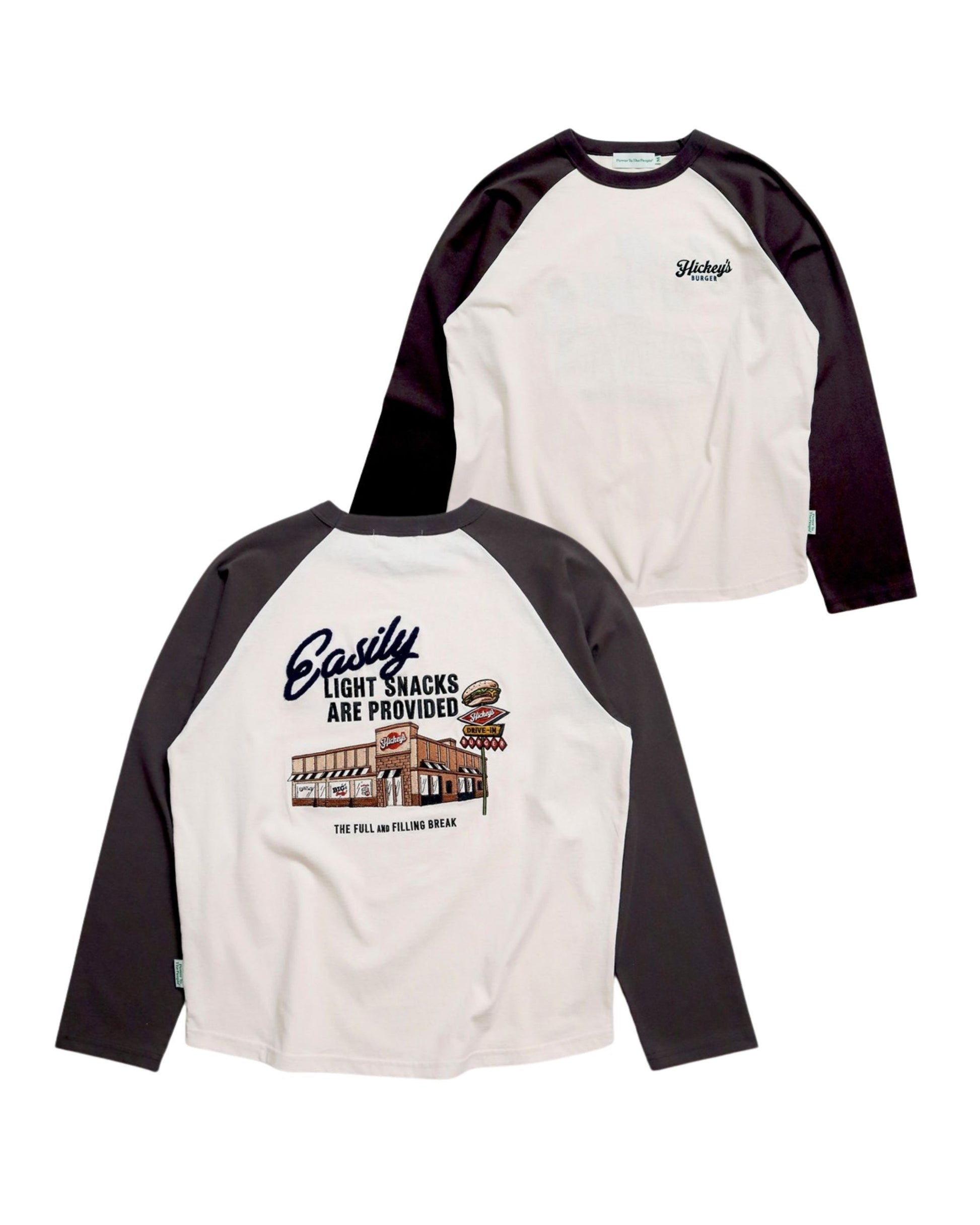 ハンバーガーショップ刺繍ラグランロンT