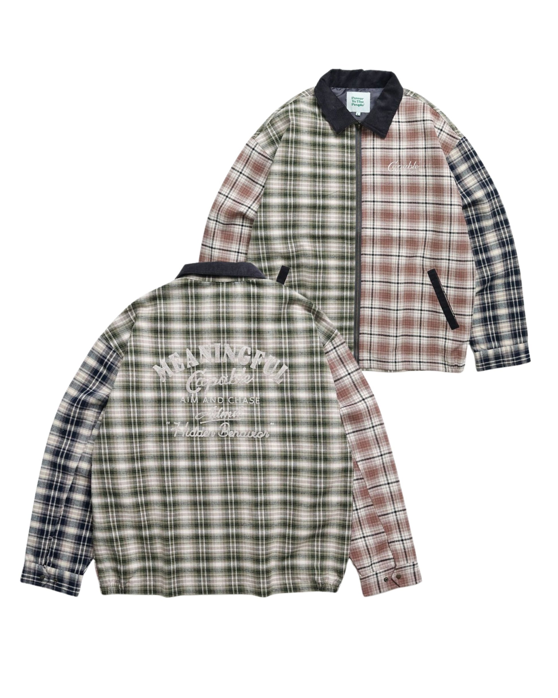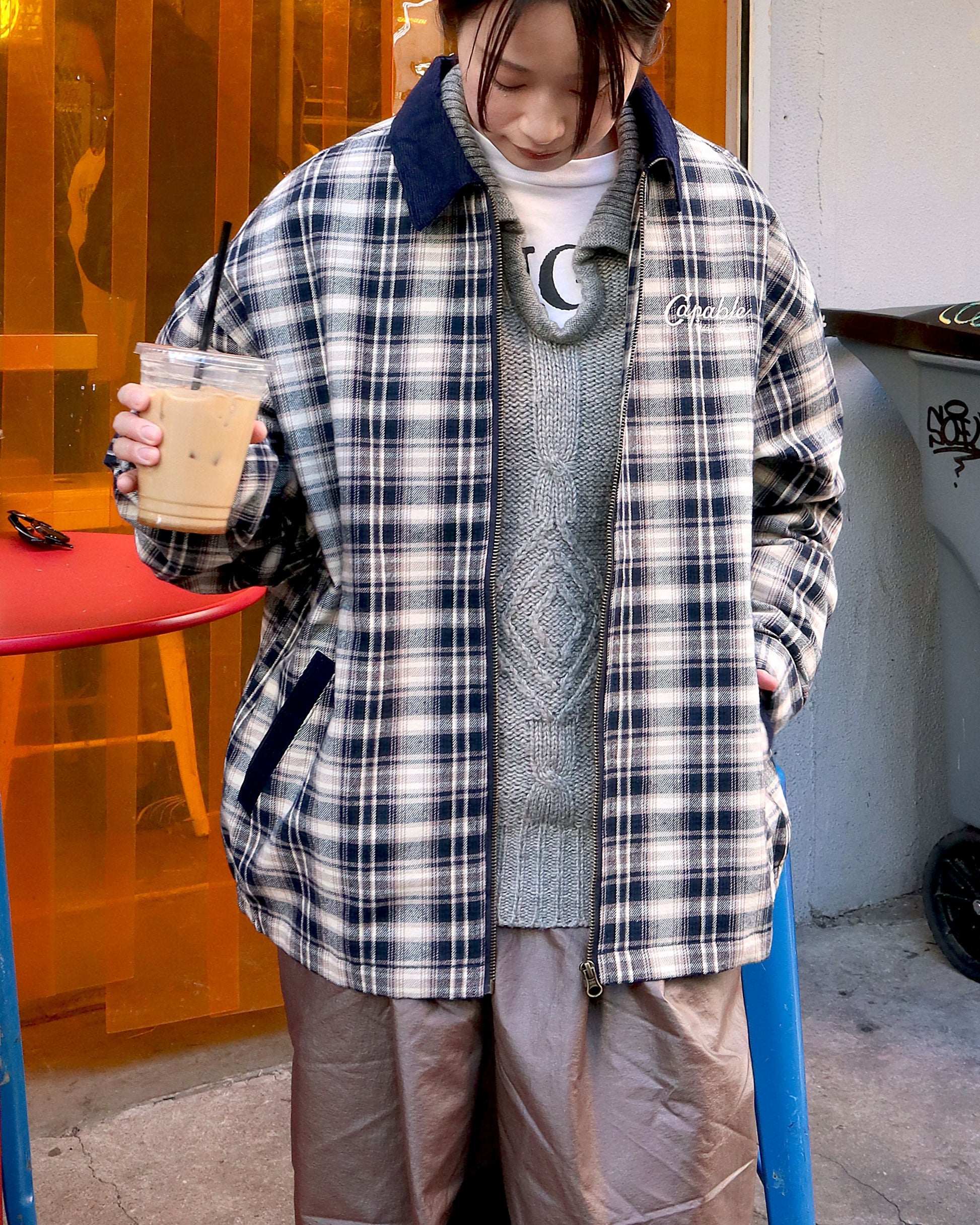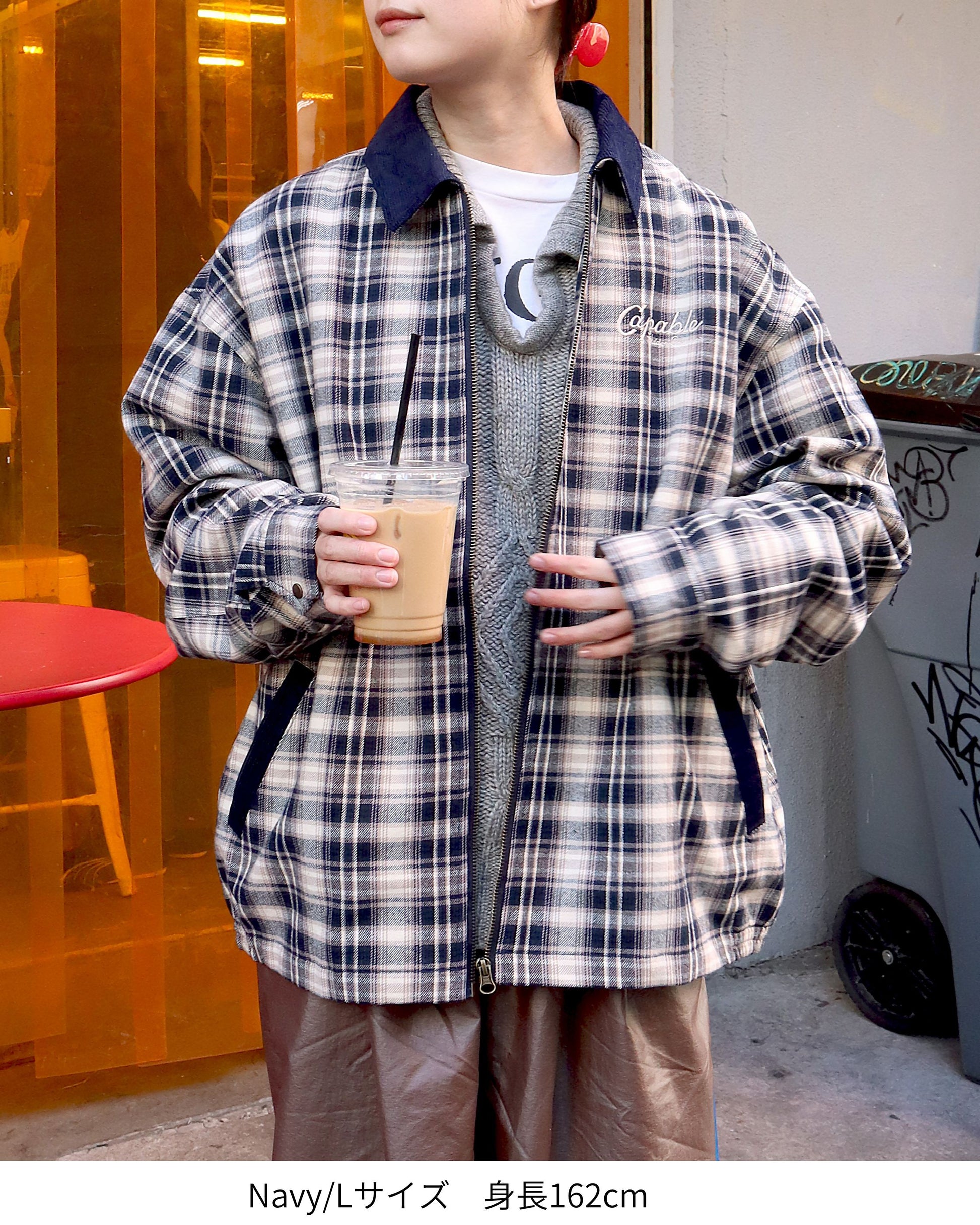 襟コーデュロイ チェック柄ジャケット