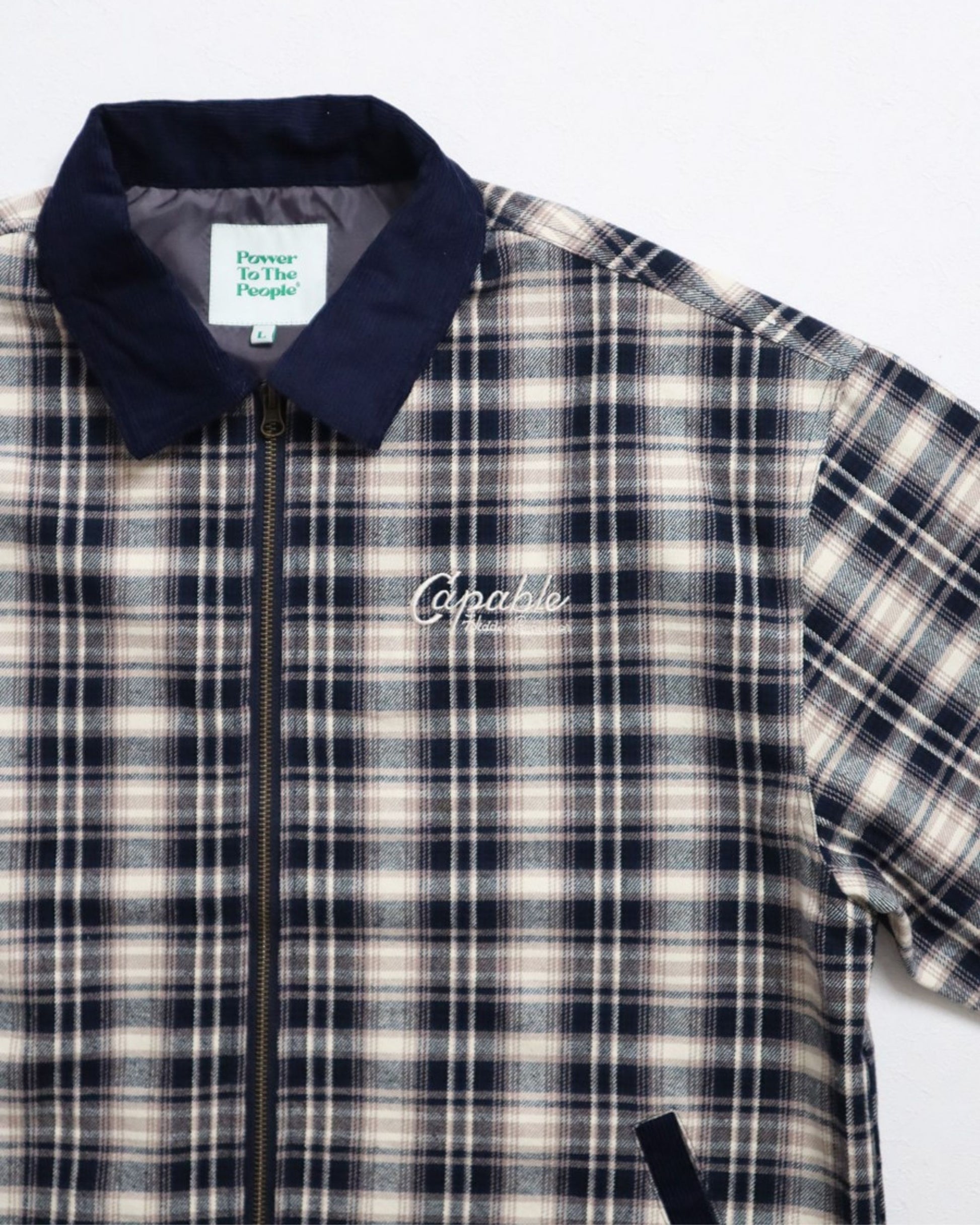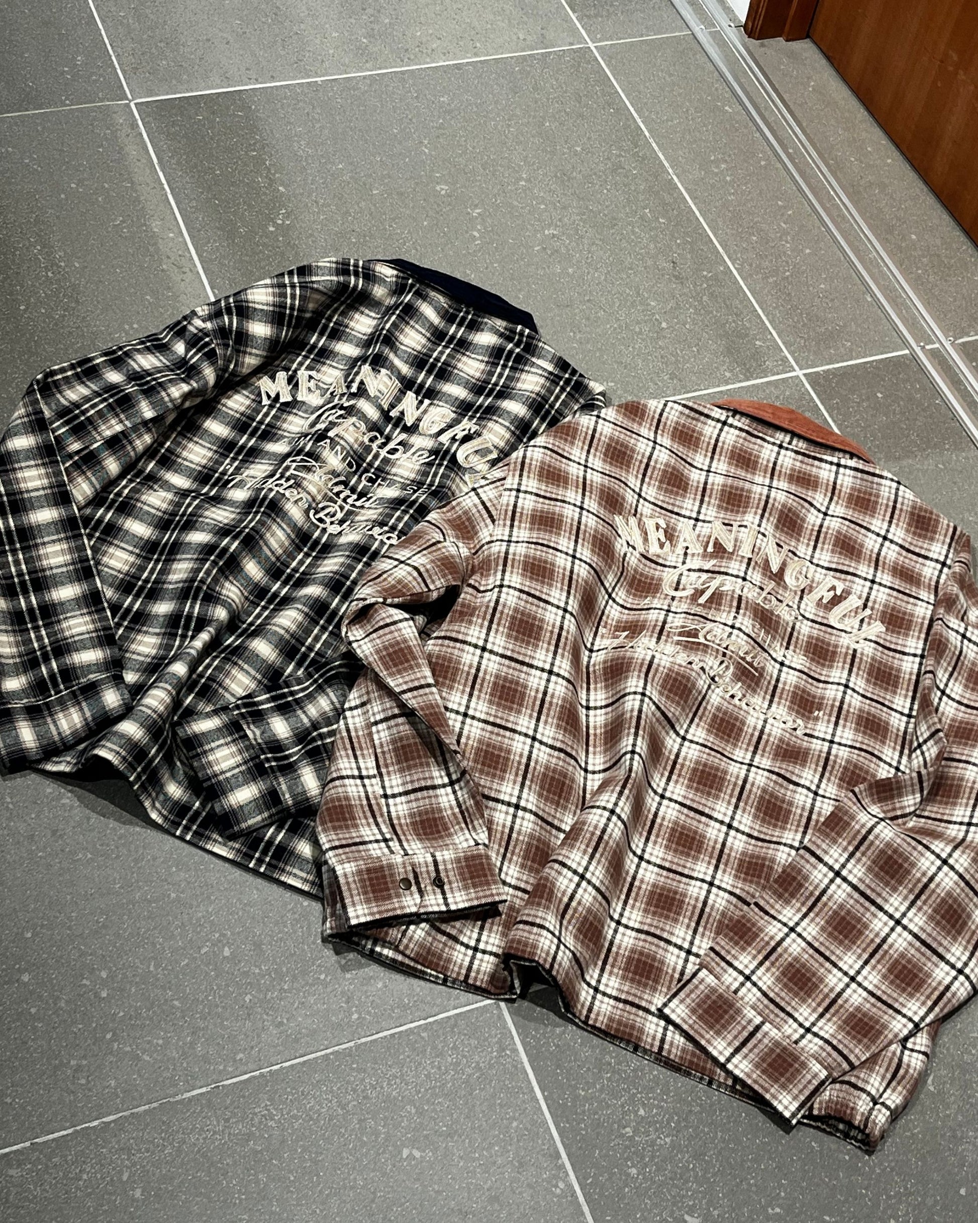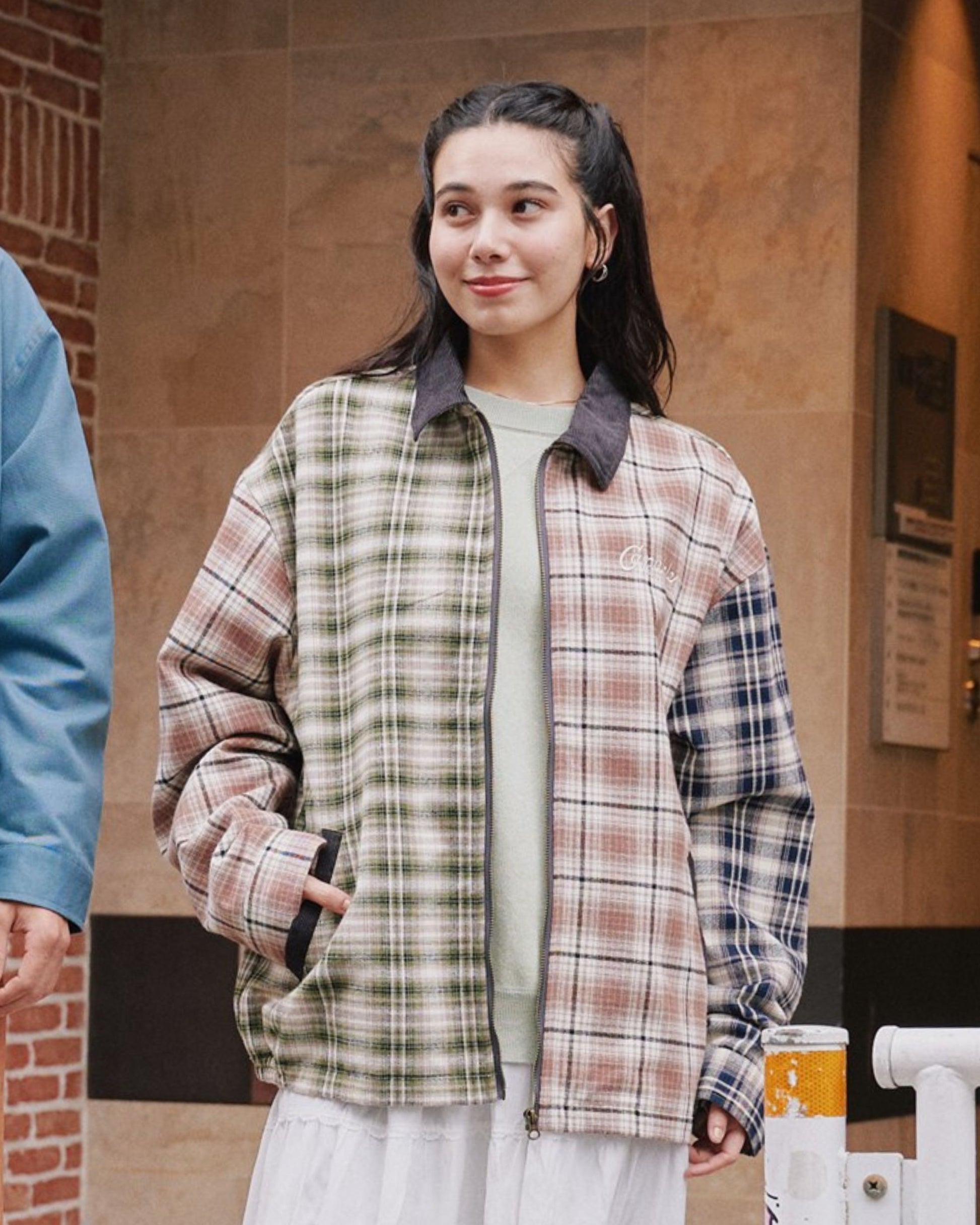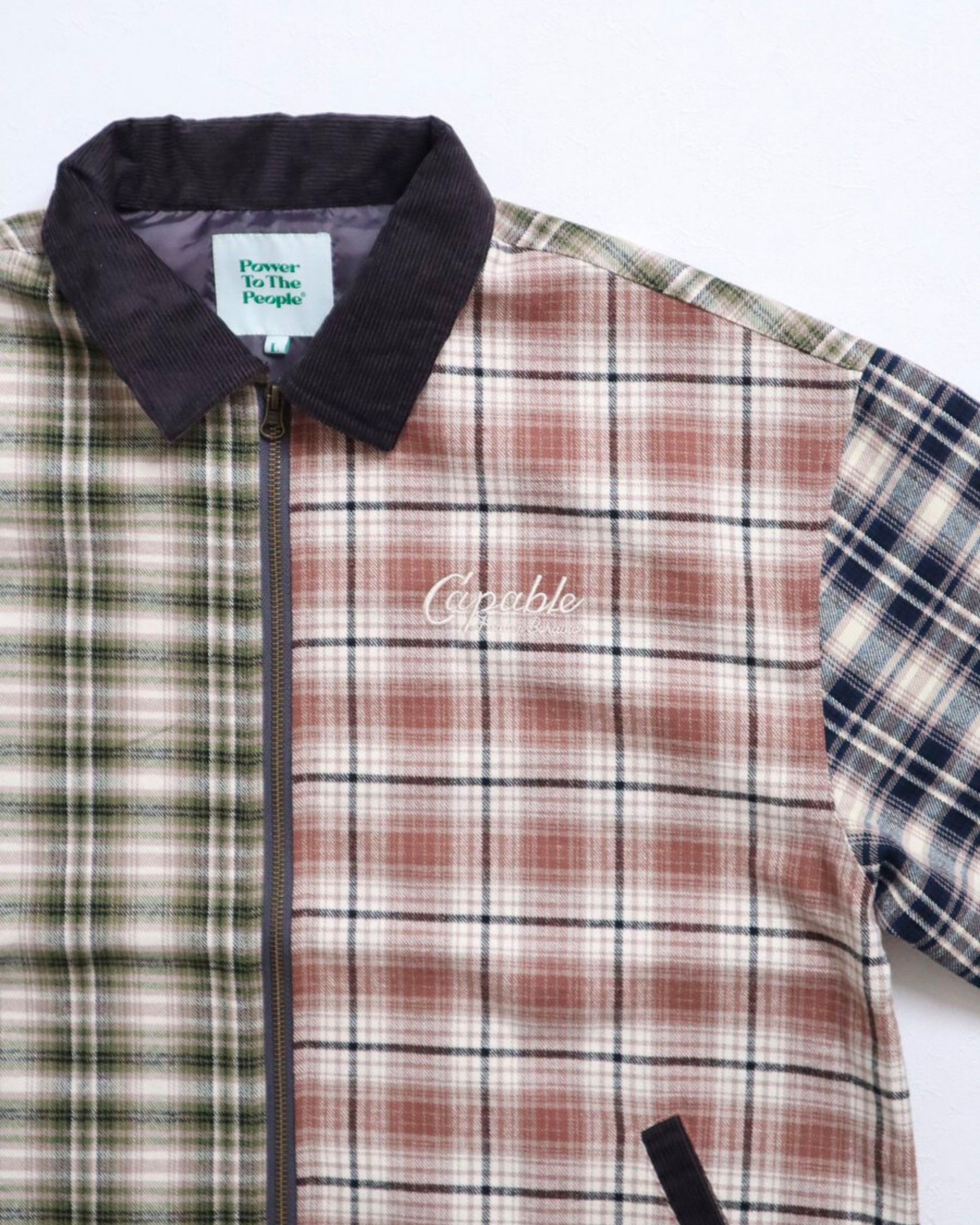 襟コーデュロイ チェック柄ジャケット