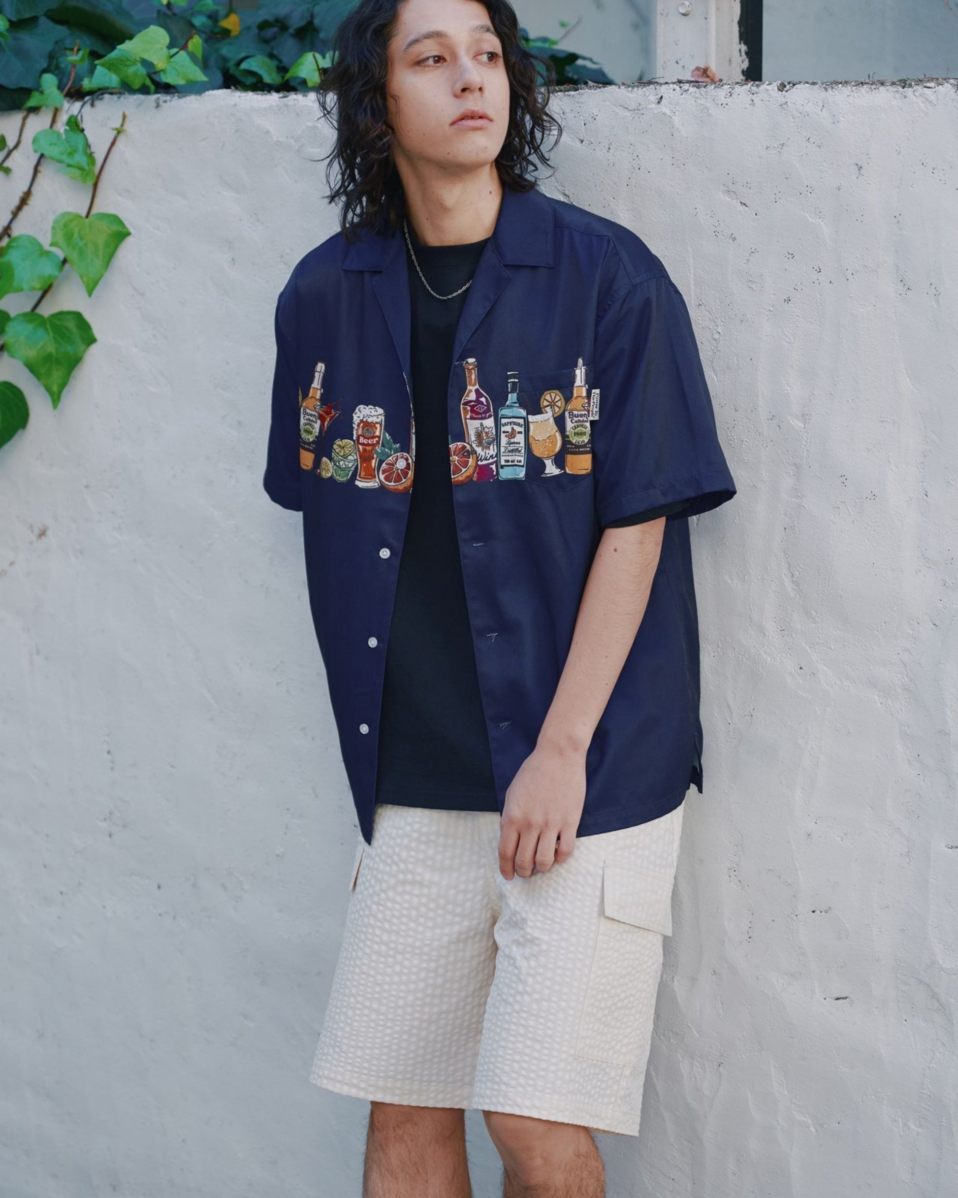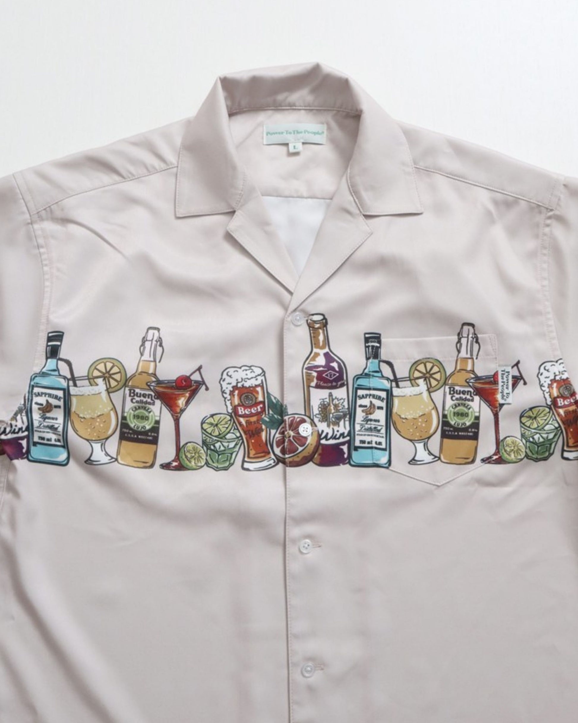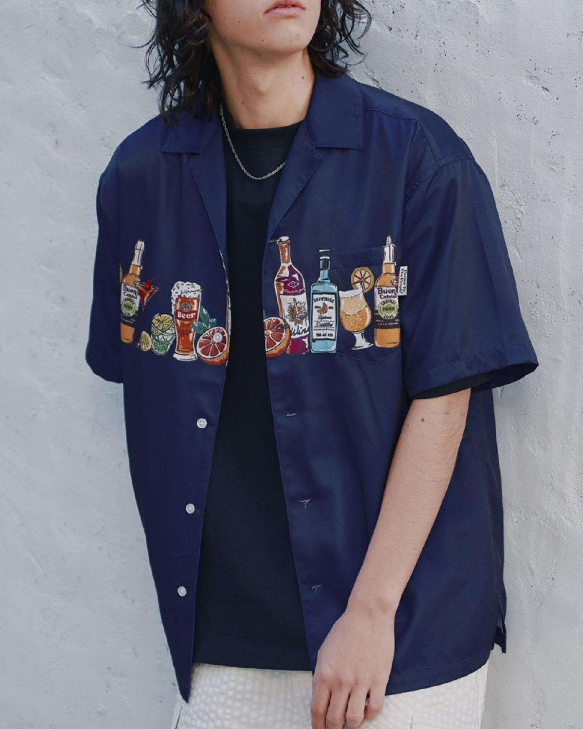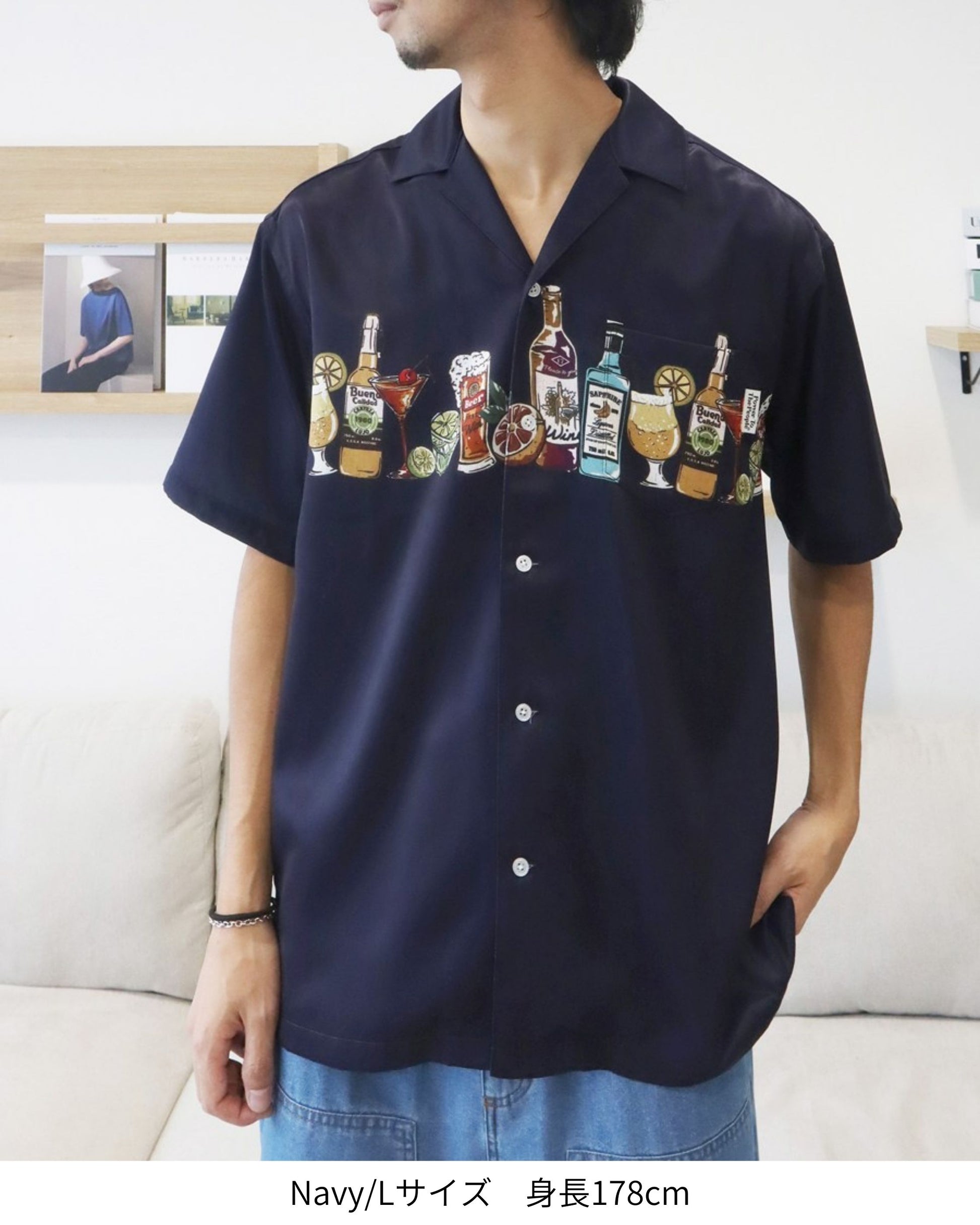 パネルプリント開襟シャツ アルコール柄