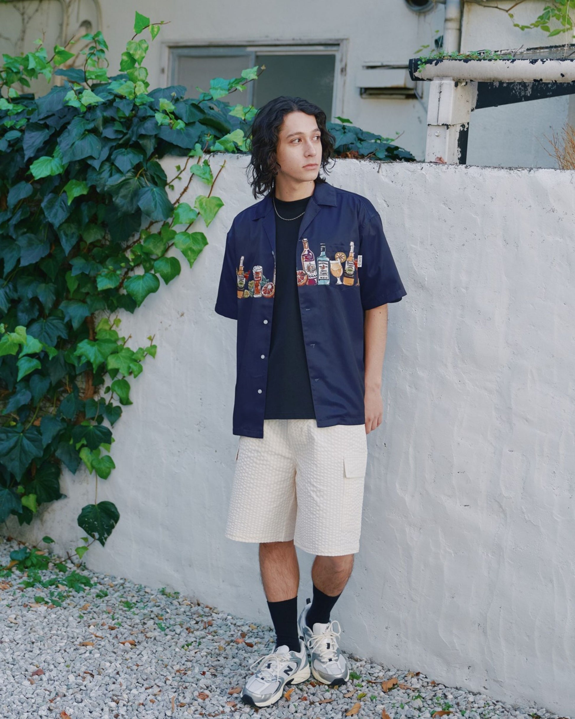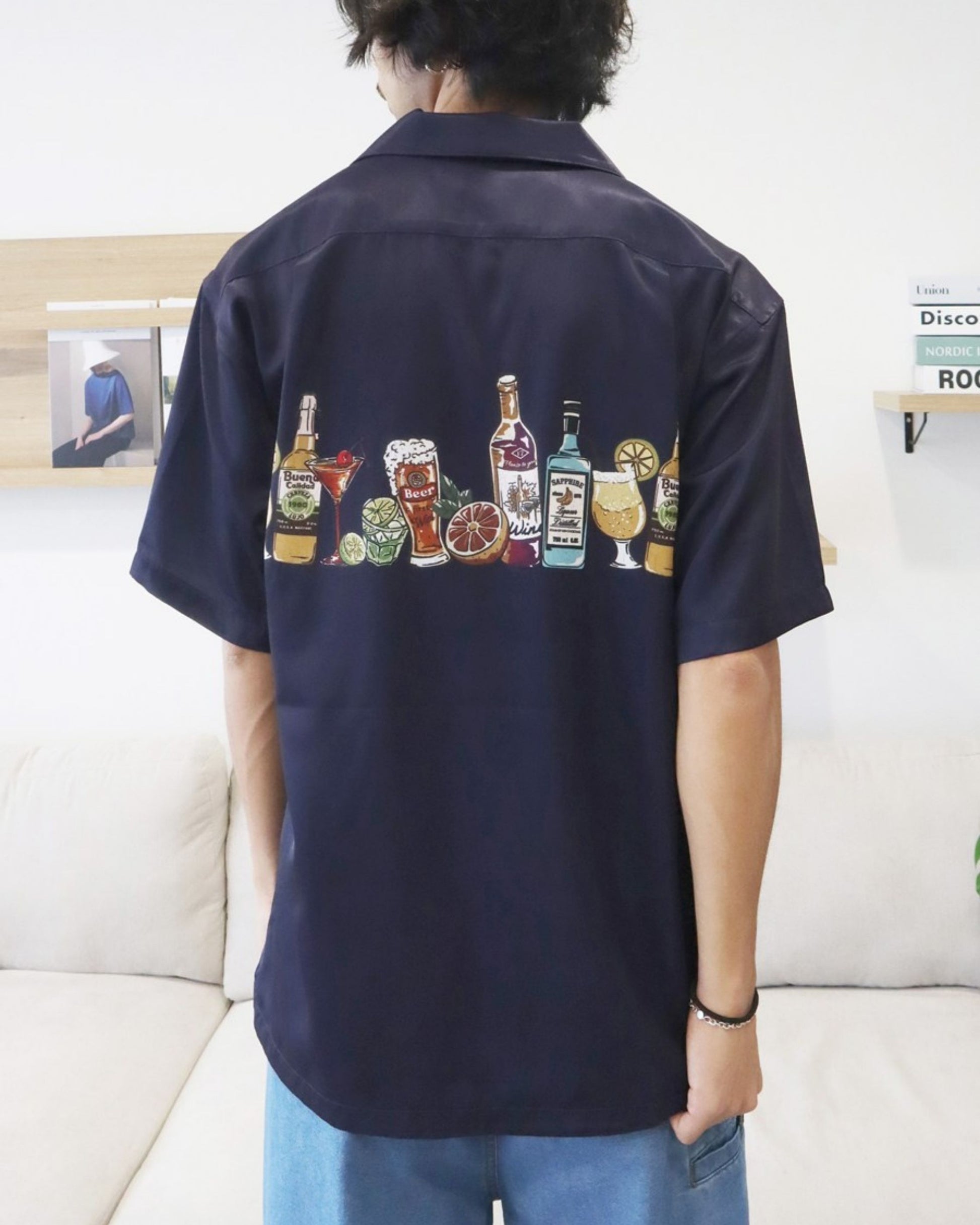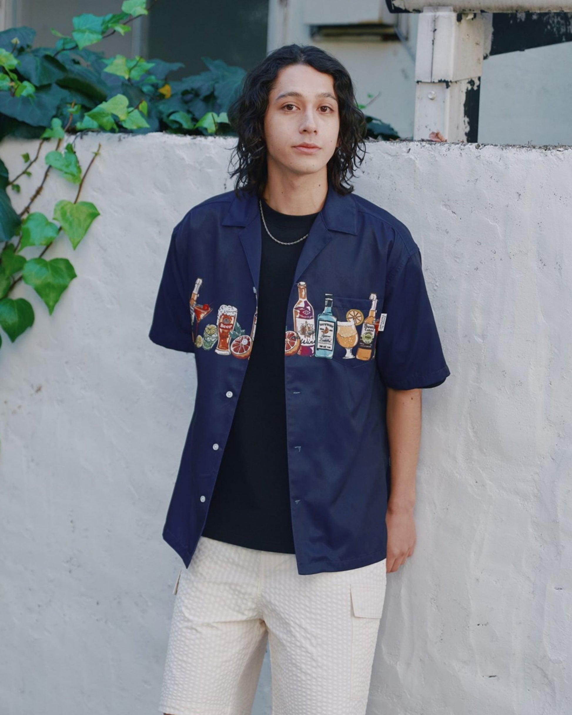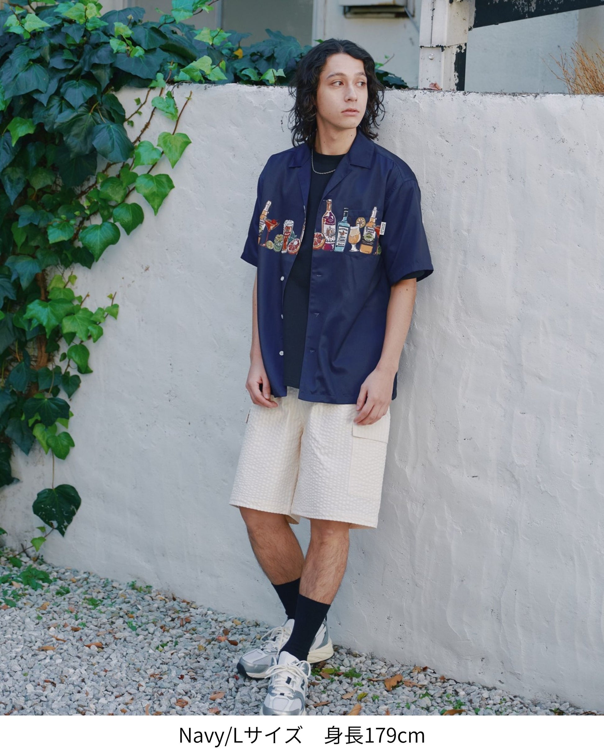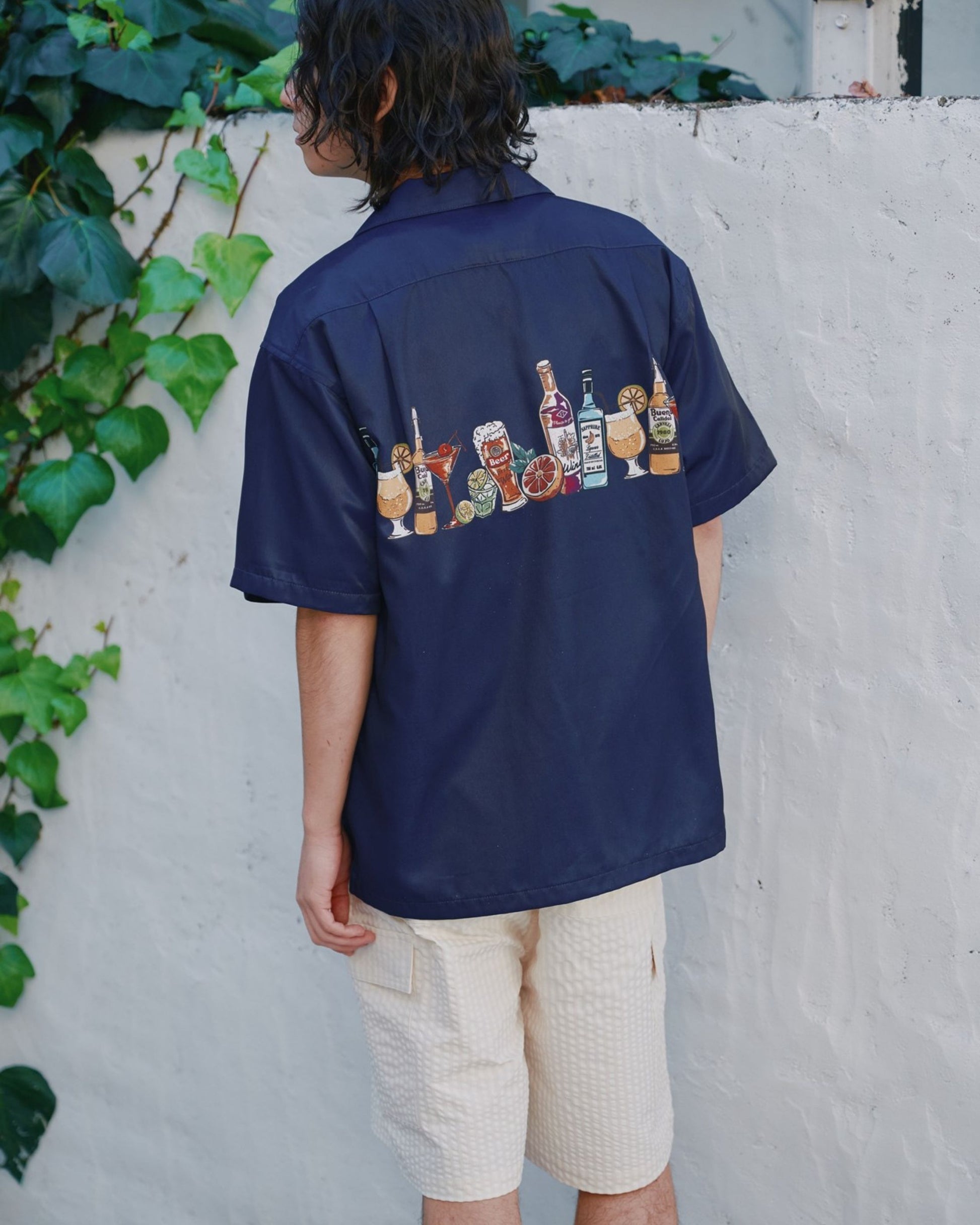 パネルプリント開襟シャツ アルコール柄