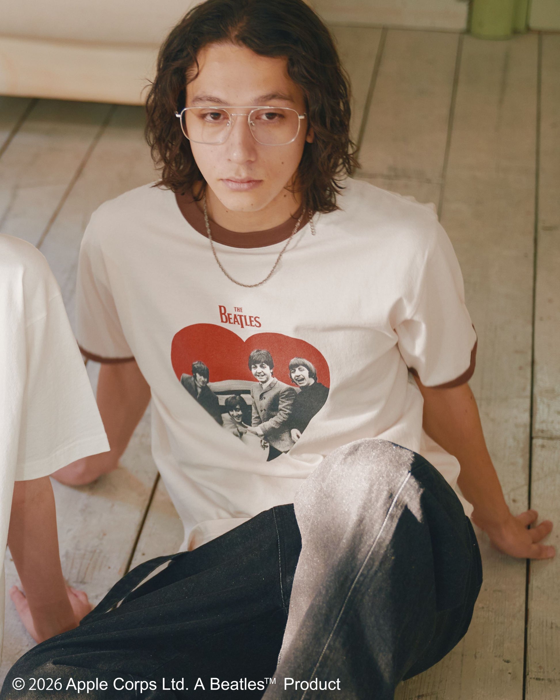 【ビートルズ】ハート柄リンガーT